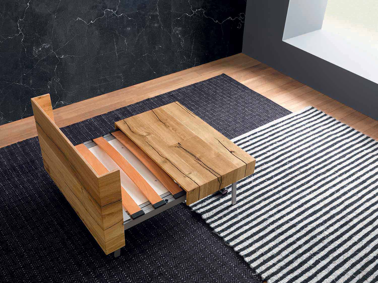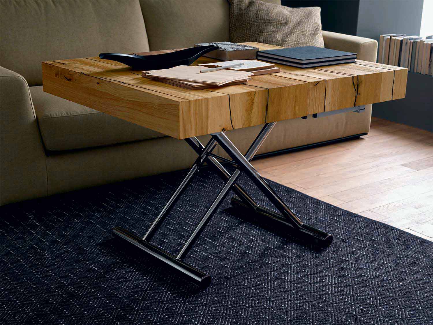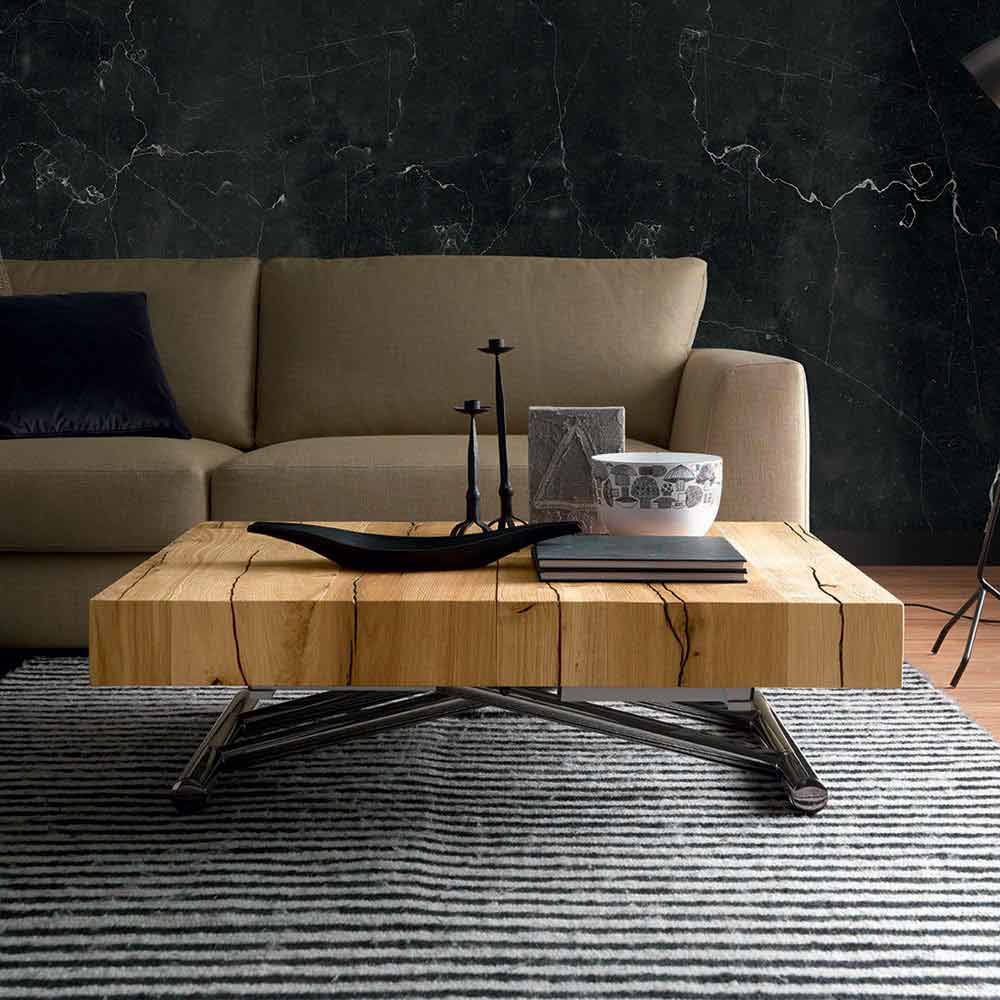 Modernt soffbord i massivt trä och metall konverterbart till matbord eller säng Made in Italy.