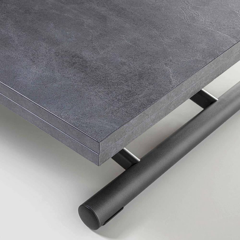 antracitfinish metallbas . Det unika med detta unika och innovativa soffbord är dess struktur som gör att det snabbt och enkelt kan förvandlas till ett praktiskt matbord. Denna funktion maximerar dess
