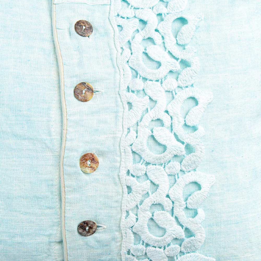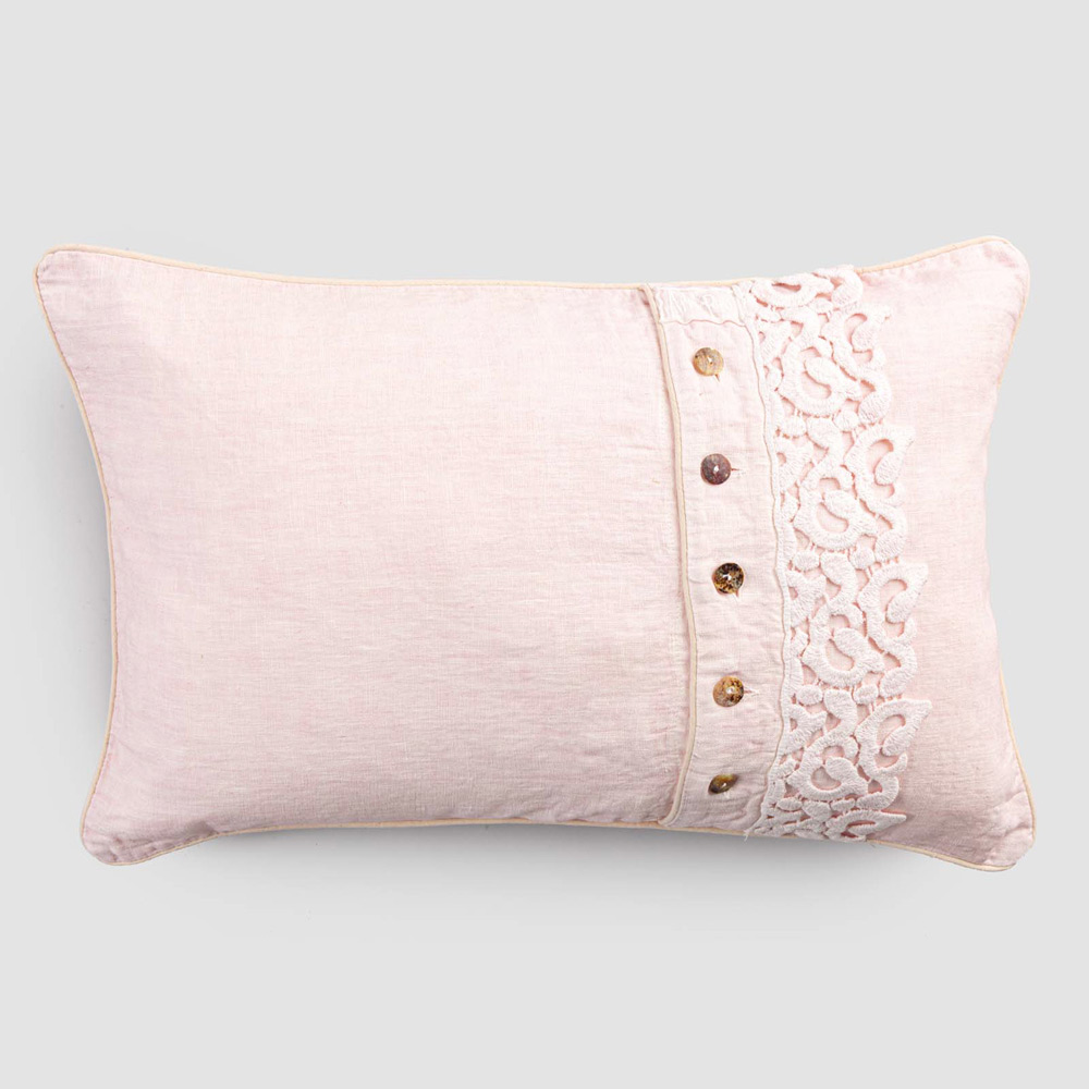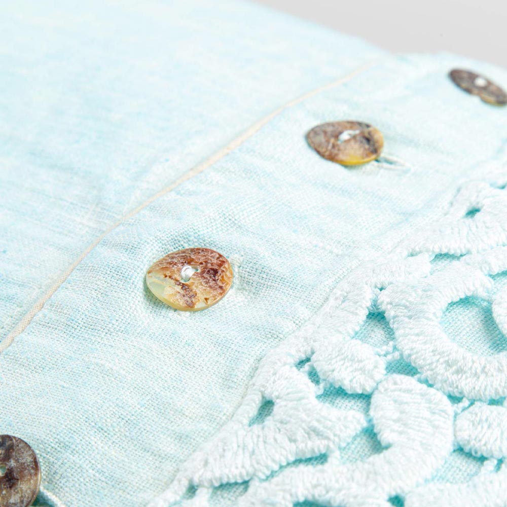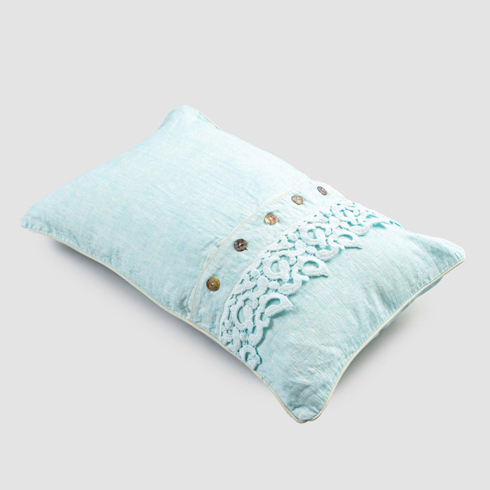Örngott i färgat linne med diktspetsar, knappar och lyxiga rör tillverkade i Italien.