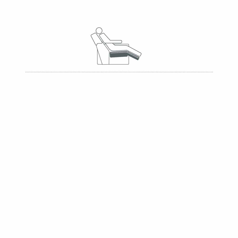 Utrustad med ett 4-motorsystem som kan garantera oberoende rörelser av ryggstöd och fotbräda. Utöver de klassiska avslappnings- och lyftställningarna kan Giglio även inta mycket funktionella positioner för ortopediskt-hälsoändamål, särskilt användbart i de fall du har fysiska behov som kräver att du sitter kvar i en fåtölj. Faktum är att systemet tillåter både att luta fåtöljen uppåt i tyngdkraftsfri position och att höja fåtöljen med cirka 20 cm, så att sätet hålls parallellt med golvet. Denna parallella rörelse gör det möjligt att närma sig ett bord, för lunch eller för andra behov, samtidigt som du sitter bekvämt. Eventuell stress och obehag av att byta position underlättas därmed.