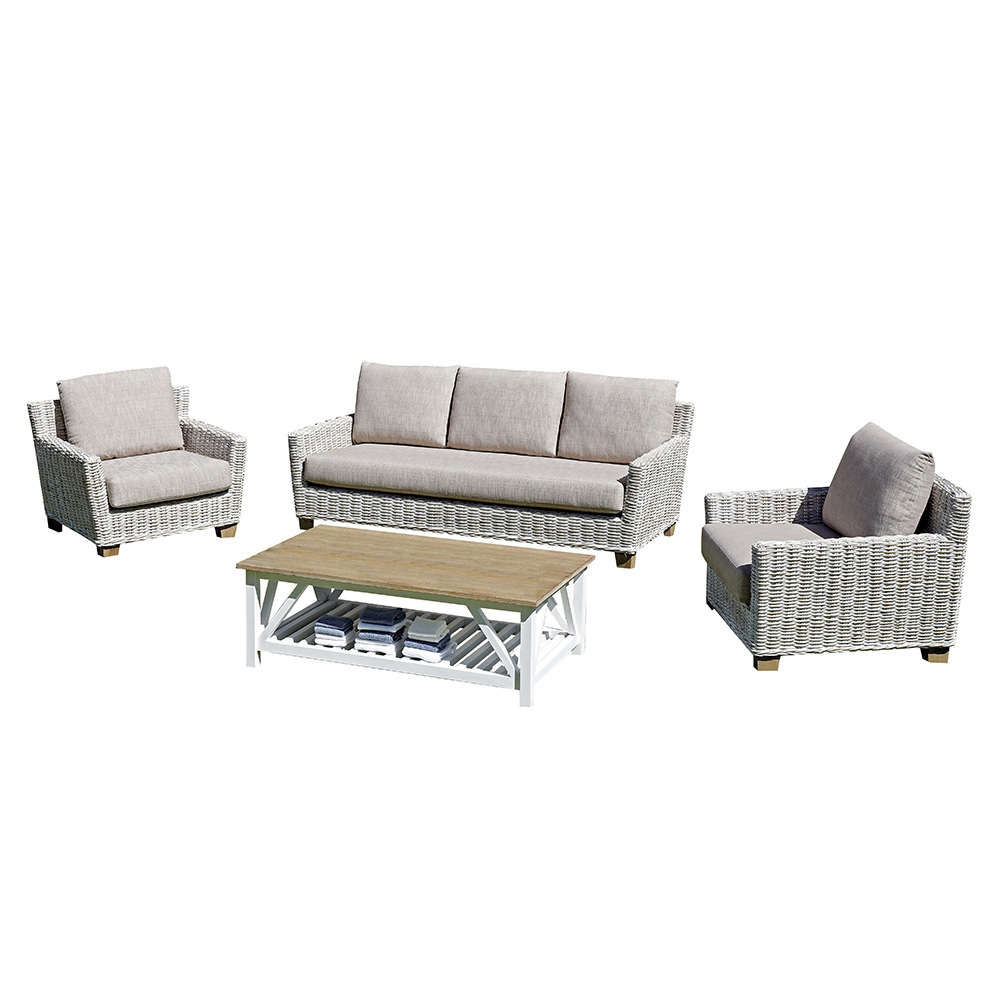 Trädgårdslounge med soffbord i mangoträ inklusive kuddar.