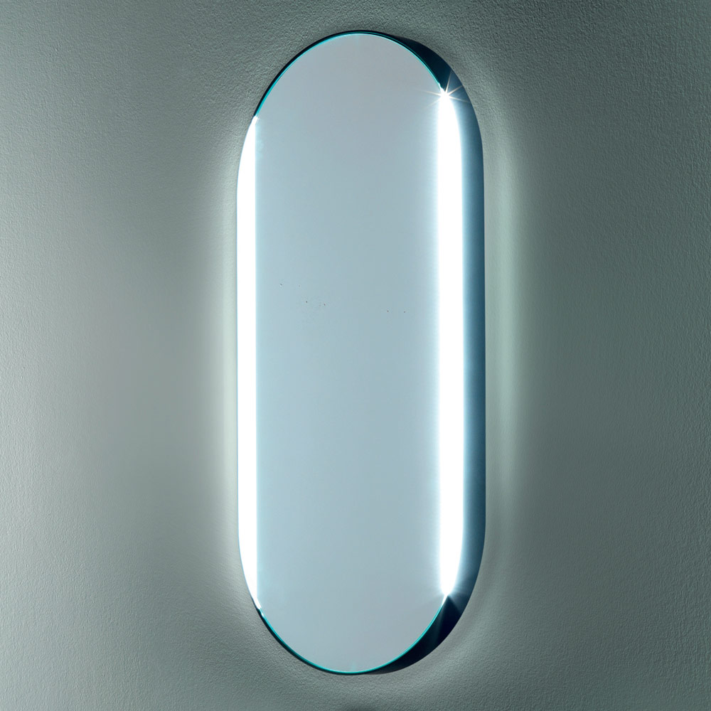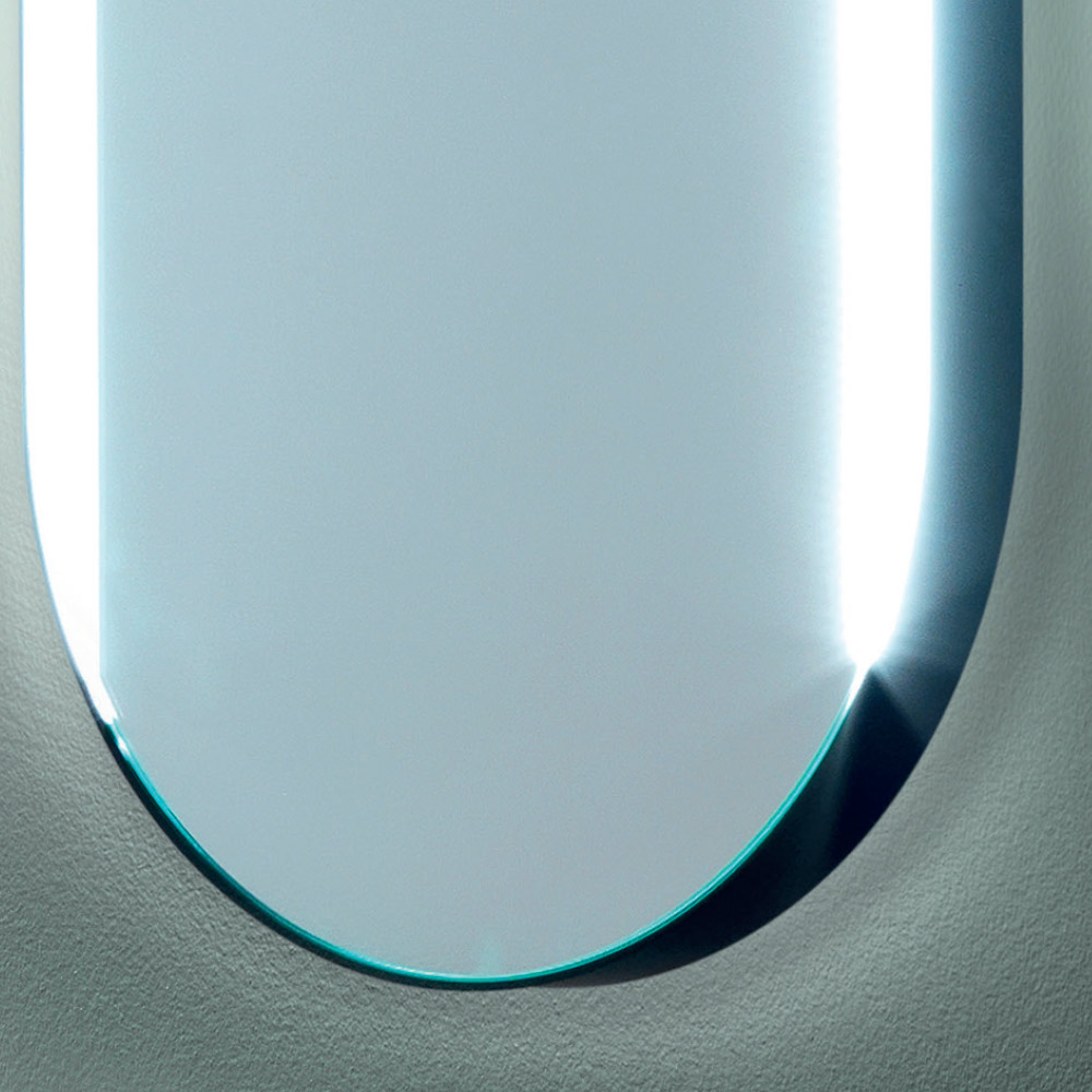 LED-lampor placerade längs kanten skapar en aura av mjukt ljus som tillför inte bara en visuell dimension utan också en praktisk funktion, vilket gör den idealisk för uppgifter som kräver optimal belysning, som att sminka eller raka sig. Denna touch av ljusstyrka förvandlar varje reflektion till en upplevelse av lyx och komfort .