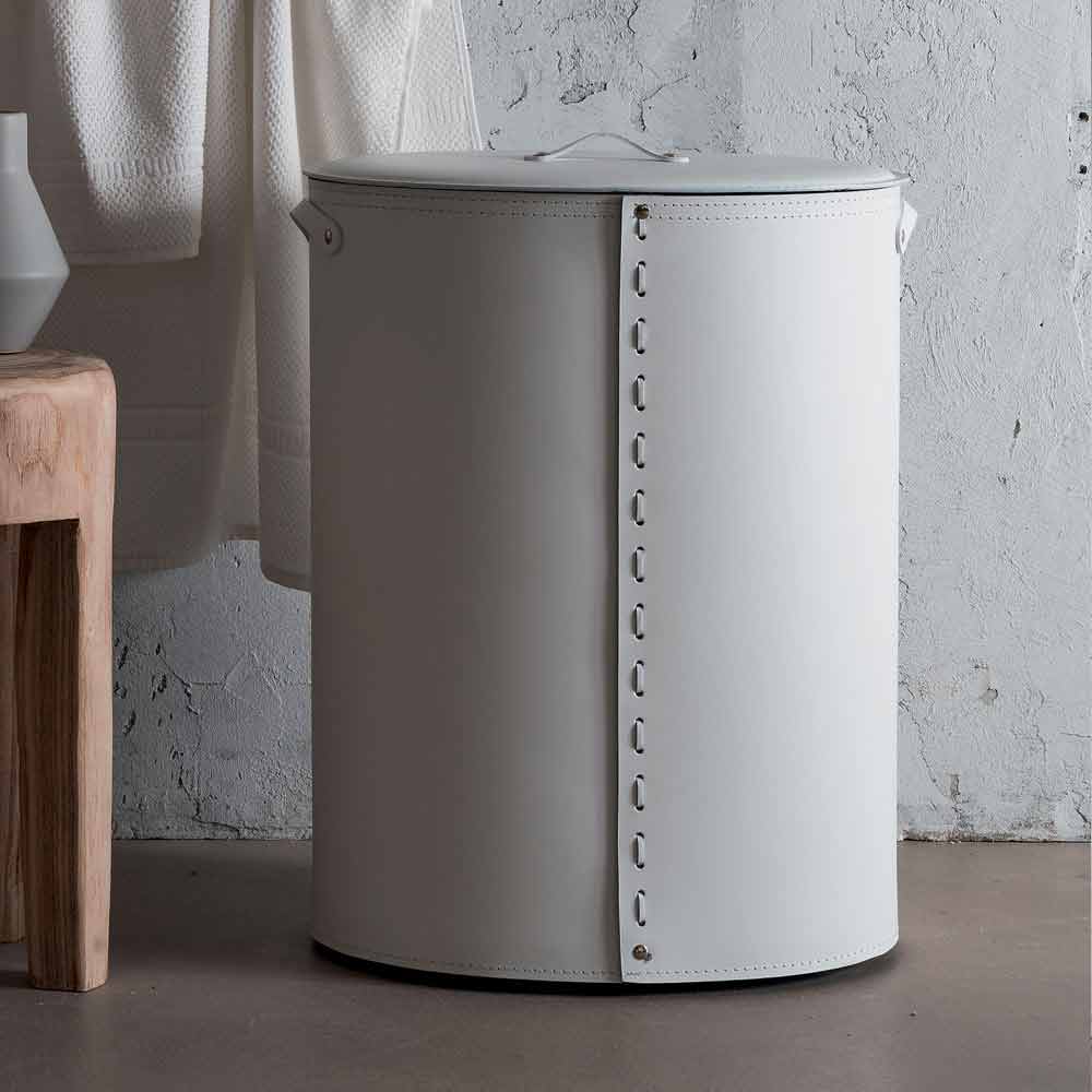 Oval tvättkorg i Riky regenererat läder tillverkat i Italien