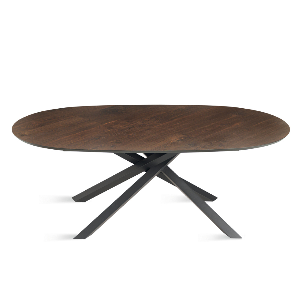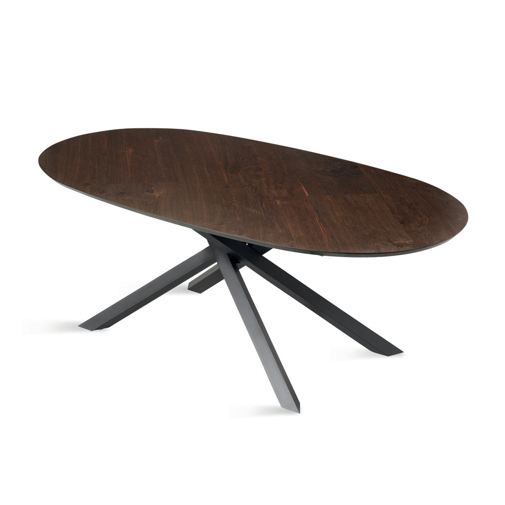 Ett elegant matbord tillverkat i Italien, designat för att elegant inreda din matsal eller vardagsrumsdel . Bordet utmärker sig med sin raffinerade ovala skiva i ekfaner , med en mjuk profil som uppmuntrar till trevlighet och ger utrymmet en naturlig elegans.