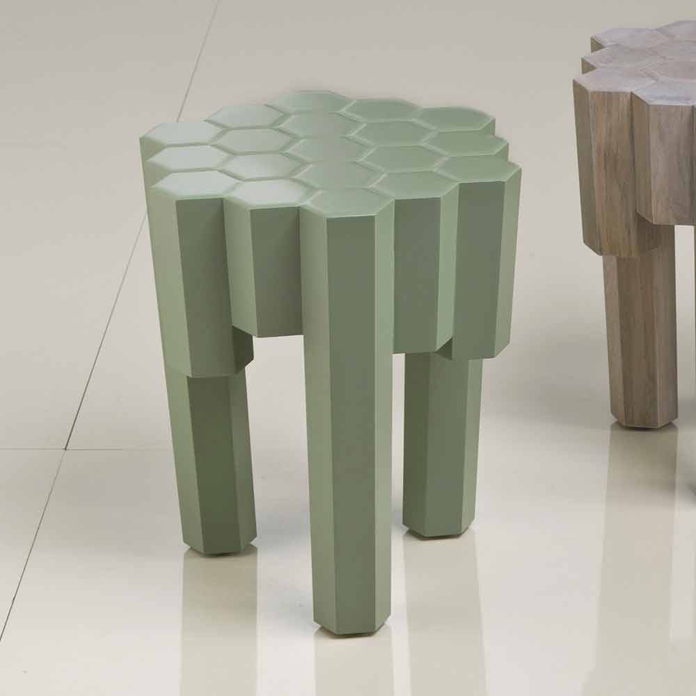 Pall / ner träbord gjord av hexagoner. Tabeller som kännetecknas av fullheten av massivt trä och en honeycomb konstruktion av honeycomb som tack vare de sex sidorna, gör dem lämpliga att sättas ihop och komponera flera system.