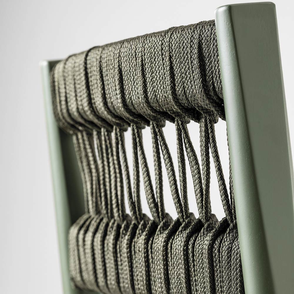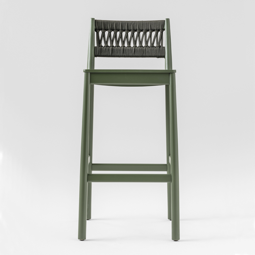 Hög pall tillverkad i Italien med lackerad bok i trä och rygg i militärgrön sladd. Enkel men samtidigt original och kreativ, denna pall förkroppsligar en reviderad traditionell design för att skapa en innovativ och modern produkt, egenskaper som erhålls tack vare repvävets egenhet som täcker hela ryggstödet för att ge ett nytt och modernt utseende. avantgarde. Tack vare den diskreta och sobera ytan på strukturen visar det sig vara ett extremt mångsidigt säte vars personlighet bestäms av färgen som valts för repet och lyckas erbjuda nykter och diskret eller extravagant och färgstarka lösningar.