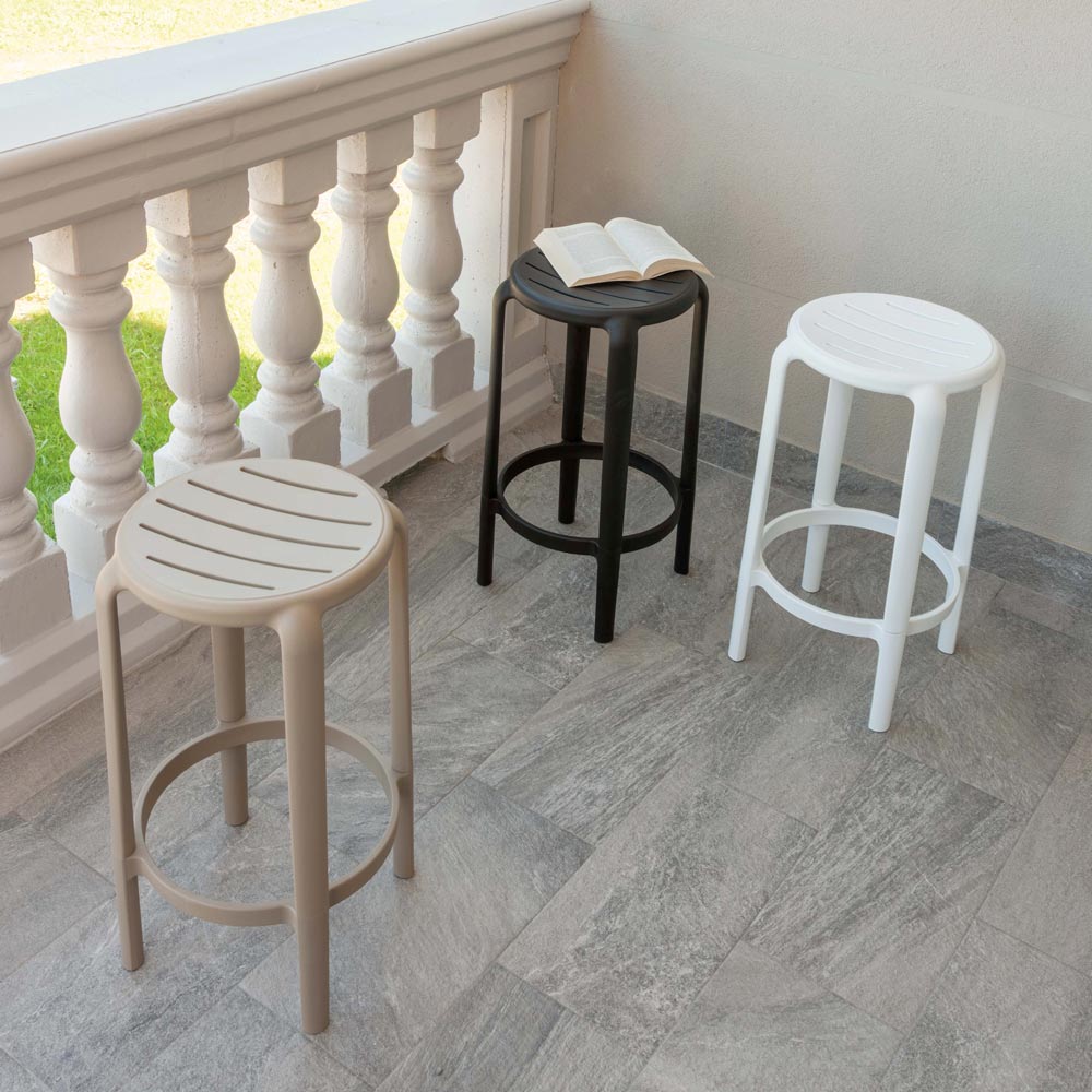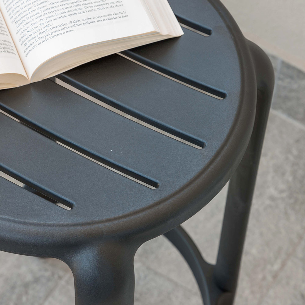 polypropen förstärkt med glasfiber. Enkelhet och funktionalitet möts i denna möbel med mjuk och linjär finish. Den är perfekt för användning i både externa och interna miljöer för att bättre anpassa sig till alla användningstillfällen. Tack vare det material som valts för sin konstruktion garanteras kvalitet och motståndskraft även över tid.