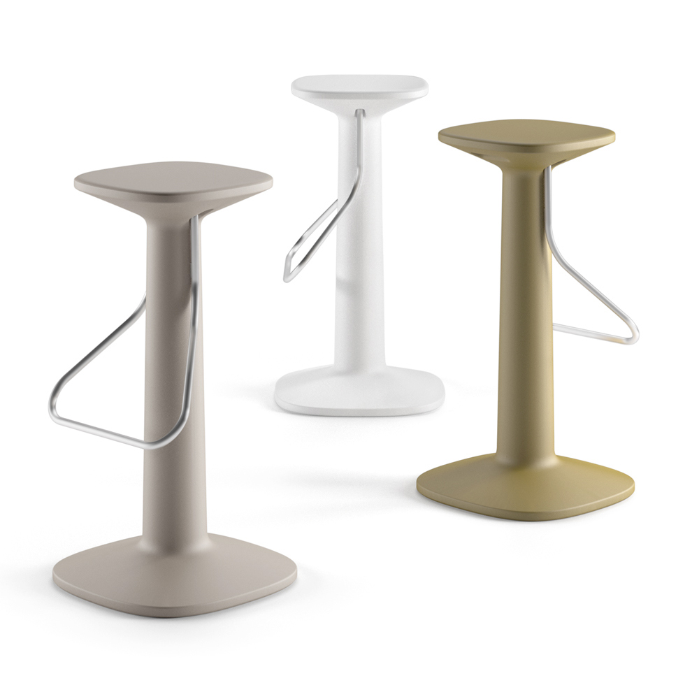polyeten i en matt yta, vilket ger mångsidighet och motståndskraft mot värme, sol och stötar, vilket gör den till den perfekta produkten att användas även i utomhusmiljöer. Pallen har också ett praktiskt och bekvämt fotstöd i rostfritt stål för att göra produkten ännu mer funktionell. Perfekt för att komplettera inredningen av miljöer med en modern och minimal design som ger karaktär och personlighet till rummet.