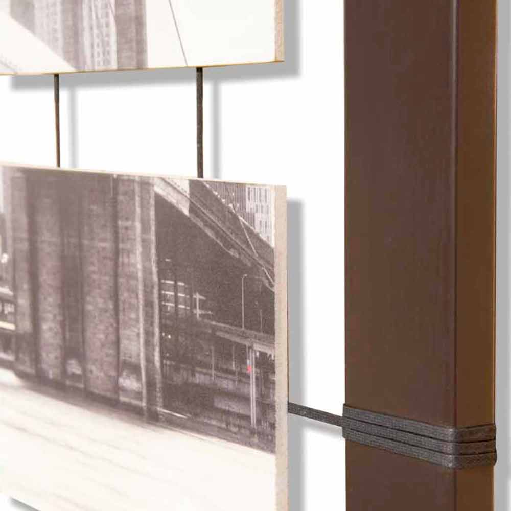 - Kaffelackad träram med tio handdekorerade paneler avstängd på rep.