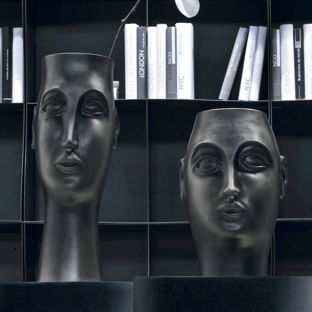 Sammansättning av keramiska vaser i form av ett ansikte, tillverkat i Italien.