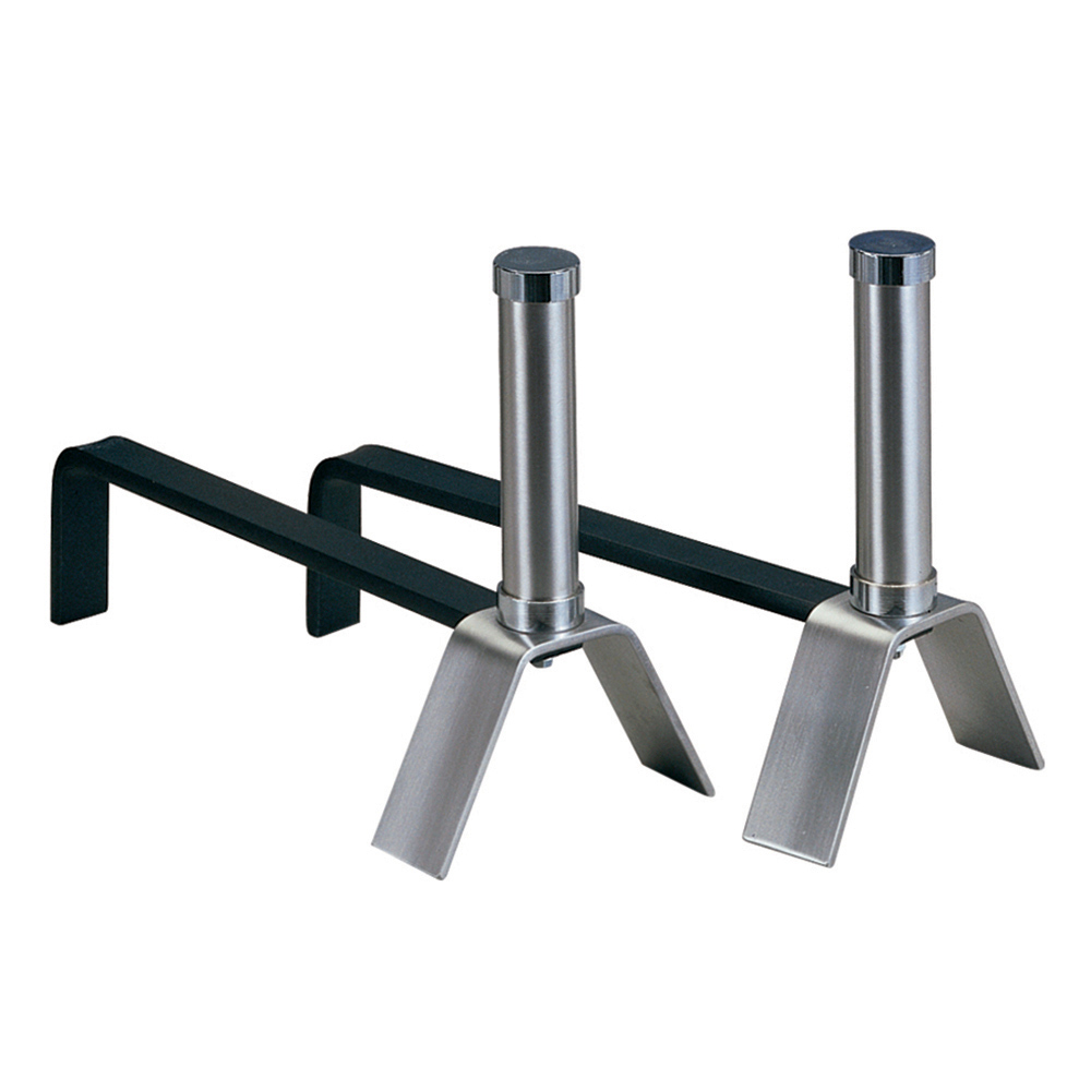 Robusta men ändå eleganta, dessa andirons är designade för att motstå den höga värmen och vikten av tätare träslag, vilket garanterar en säker och pålitlig uppvärmningsupplevelse. De är det perfekta valet för dem som vill ha en välkomnande atmosfär utan att ge upp modern estetik. Deras utseende och borstat stål integreras harmoniskt med alla typer av eldstadsinsatser, vilket ger en touch av glans och modernitet till den traditionella sprakande lågan.
