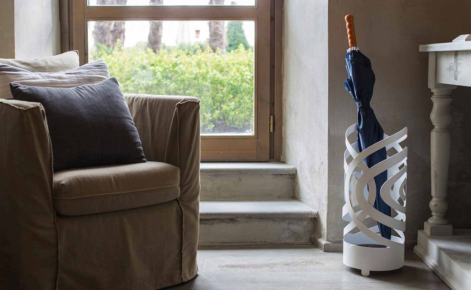 Paraplyställ för modern design tillverkad i Italien, handgjorda i vitt, beige eller lerajärn.