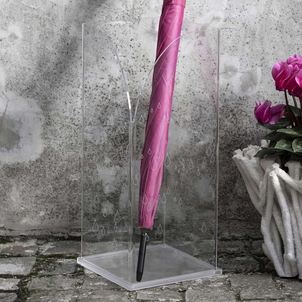 Paraplyställ i transparent akrylkristall med droppar av dekoration tillverkat i Italien.