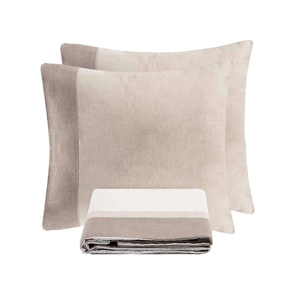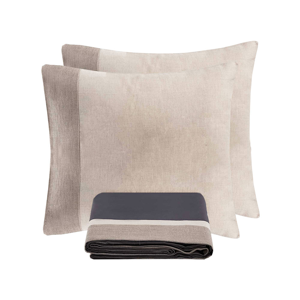 Upptäck setet tillverkat med en fin blandning av 90 % bomull och 10 % linne , en idealisk kombination för dem som söker maximal komfort kombinerat med oklanderlig design. Denna unika sammansättning kombinerar bomullens mjukhet och andningsförmåga med linnets motstånd och naturliga fräschör, vilket ger en överlägsen sömnupplevelse under varje säsong.
