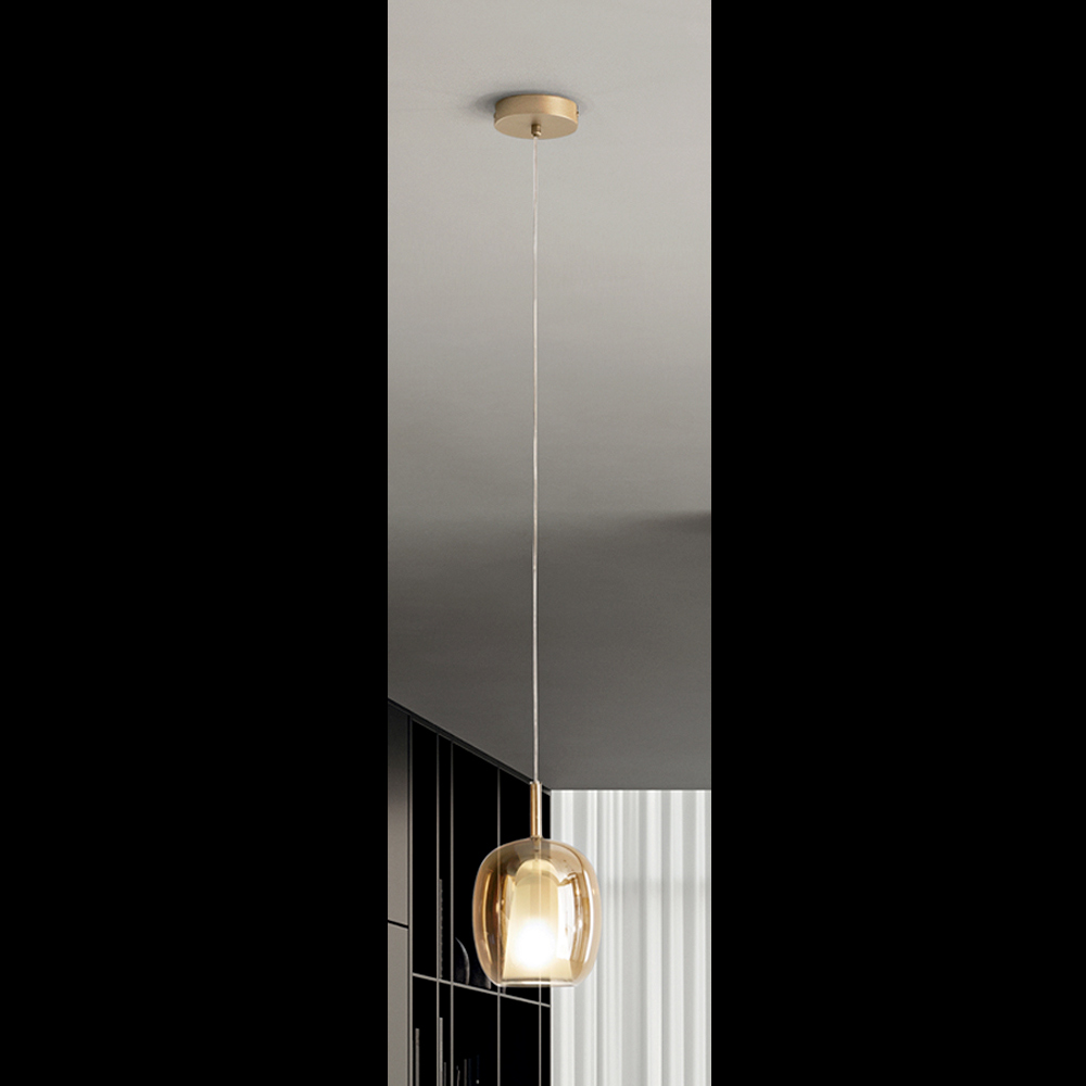 Upptäck charmen med sofistikerad belysning med denna taklampa, designad för att ingjuta elegans och värme i alla utrymmen. Lampan, upphängd i en tunn tråd, kan ha olika finish, reflektera ett välkomnande och inbjudande ljus som berikar miljön med en touch av raffinerad modernitet .
