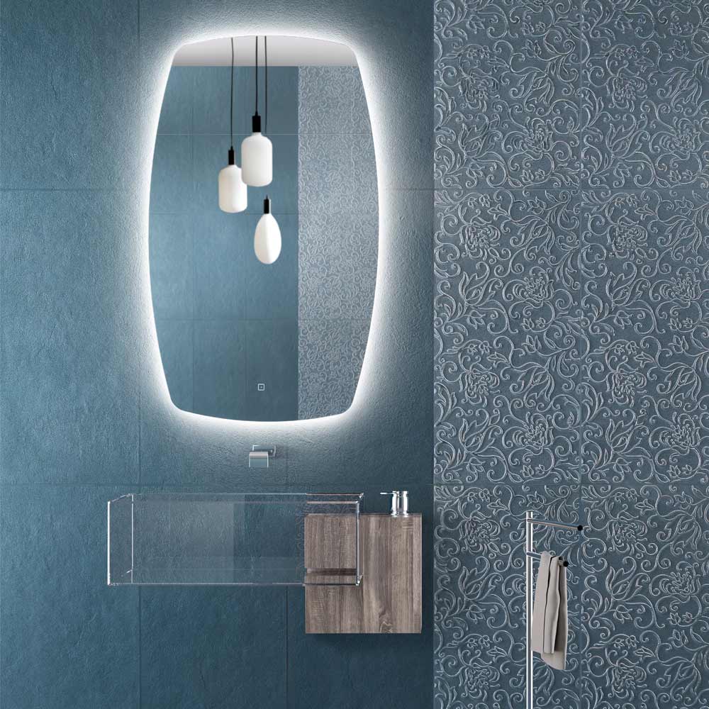 Denna spegel med en elegant och långsträckt design är en riktig höjdpunkt för alla miljöer, och pryder väggen med sin slingrande och moderna form. Perimeterbakgrundsbelysning ger en subtil men effektiv touch av ljusstyrka, vilket förstärker känslan av rymd och ger djup till rummet.