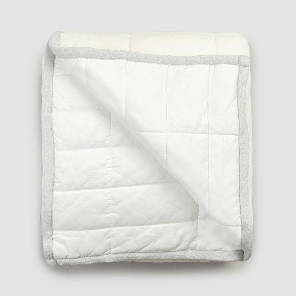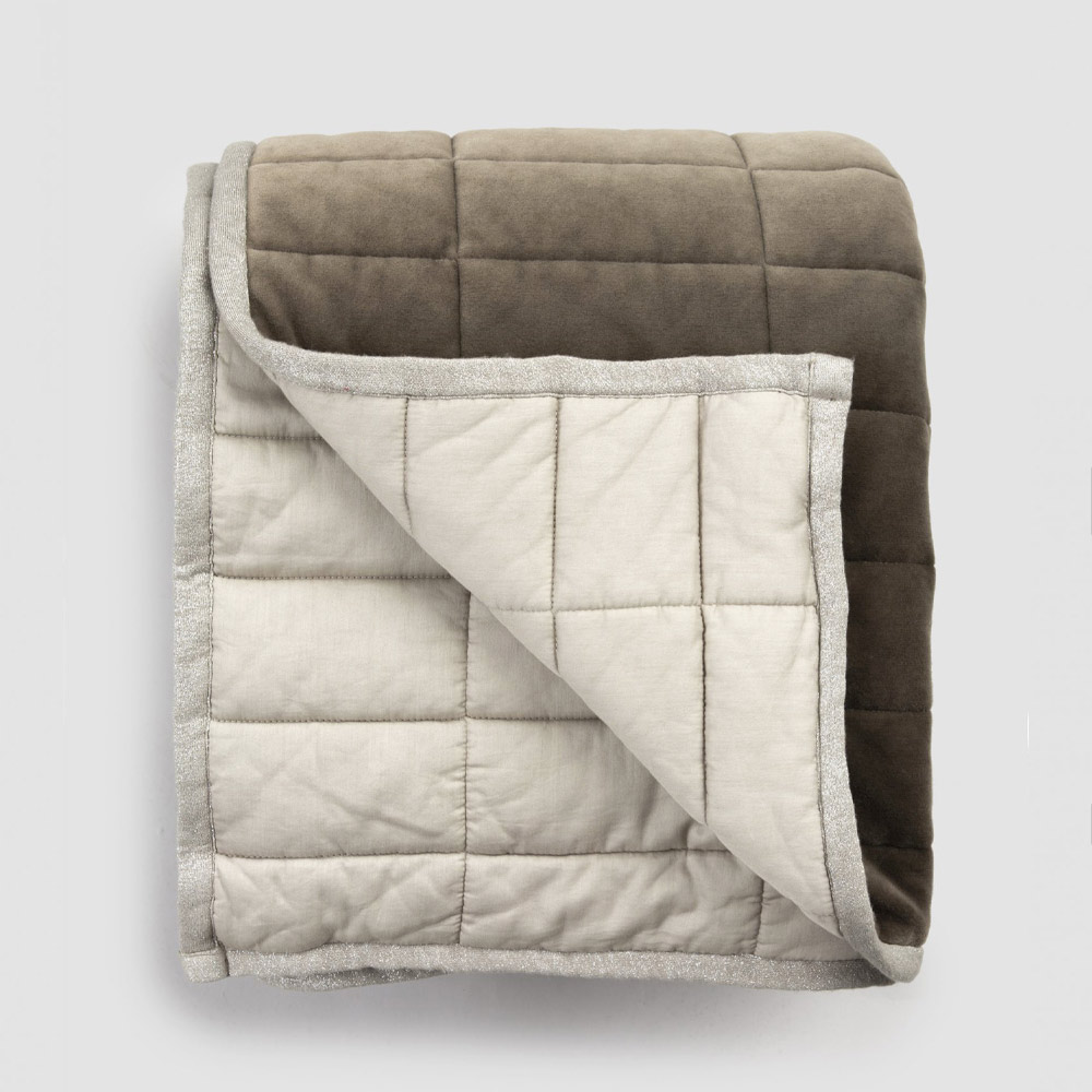 Kasta filt i bomullssatin och chenille med lurexkant, hög kvalitet tillverkad i Italien.