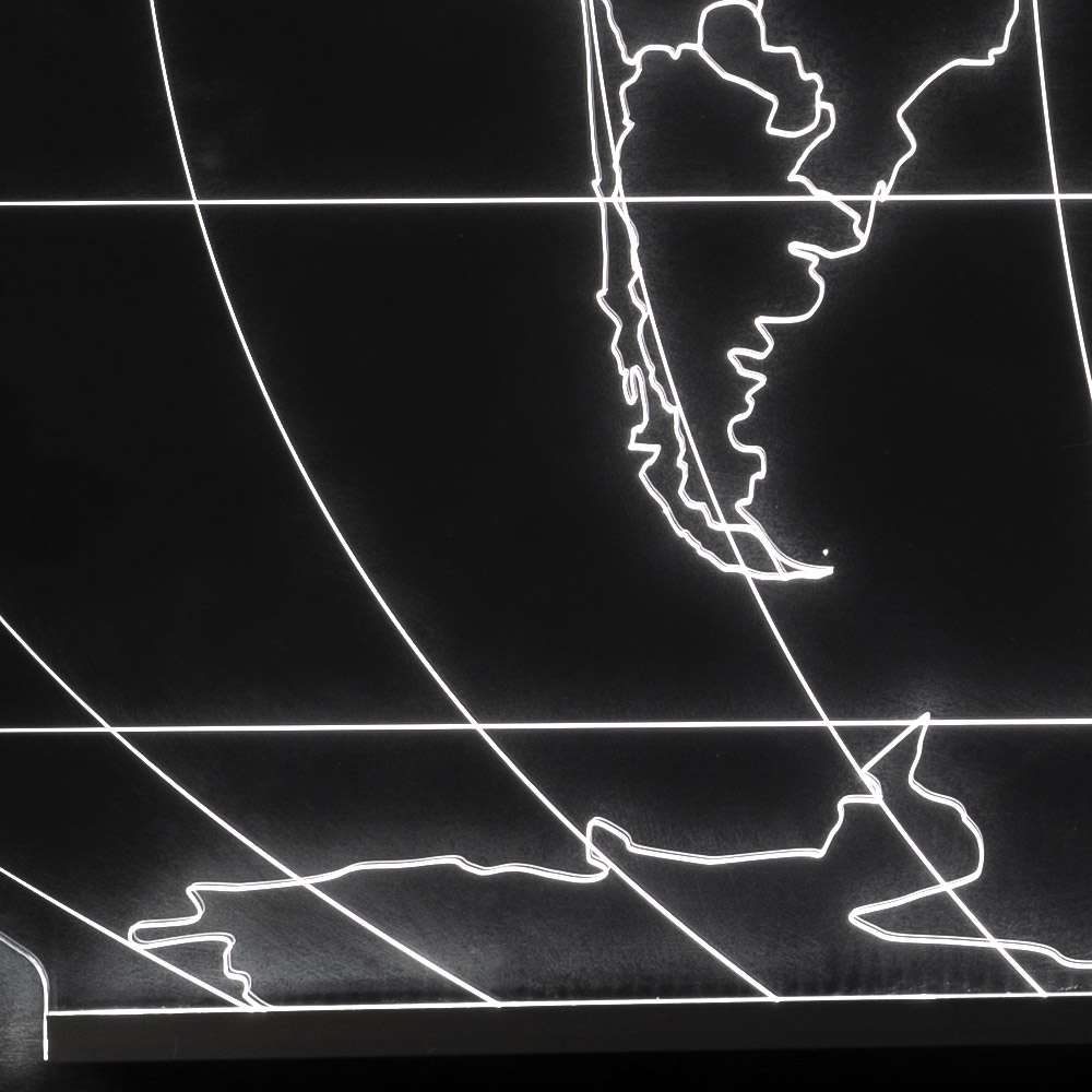 laserteknik och upplyst i hela sin längd av en led-remsa.