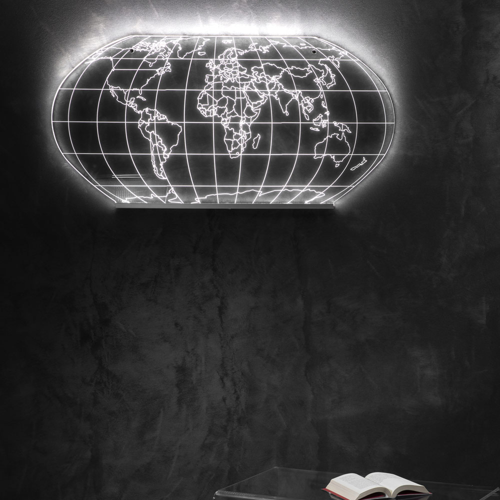 Vägglampa med varmt eller kallt led-ljus i graverad akrylkristall, 2 storlekar tillverkad i Italien.