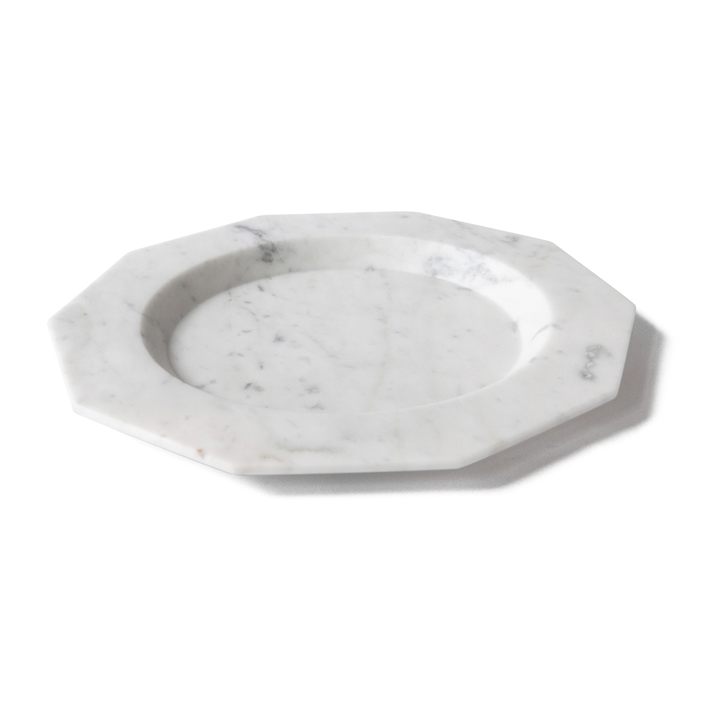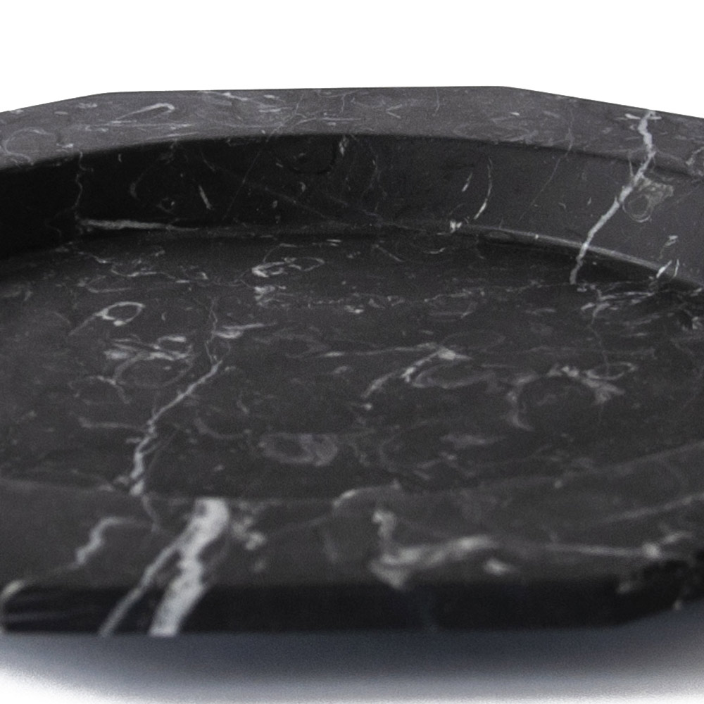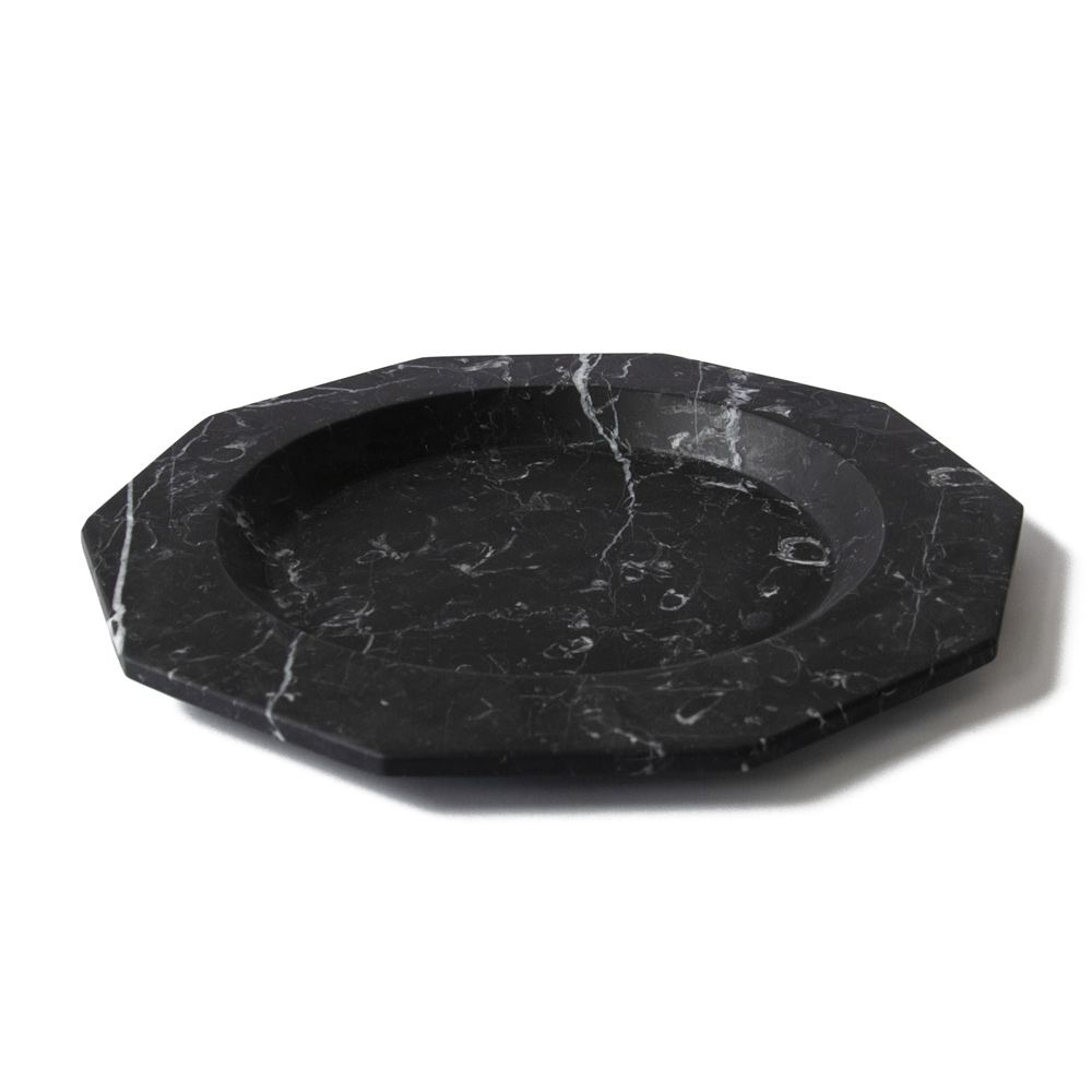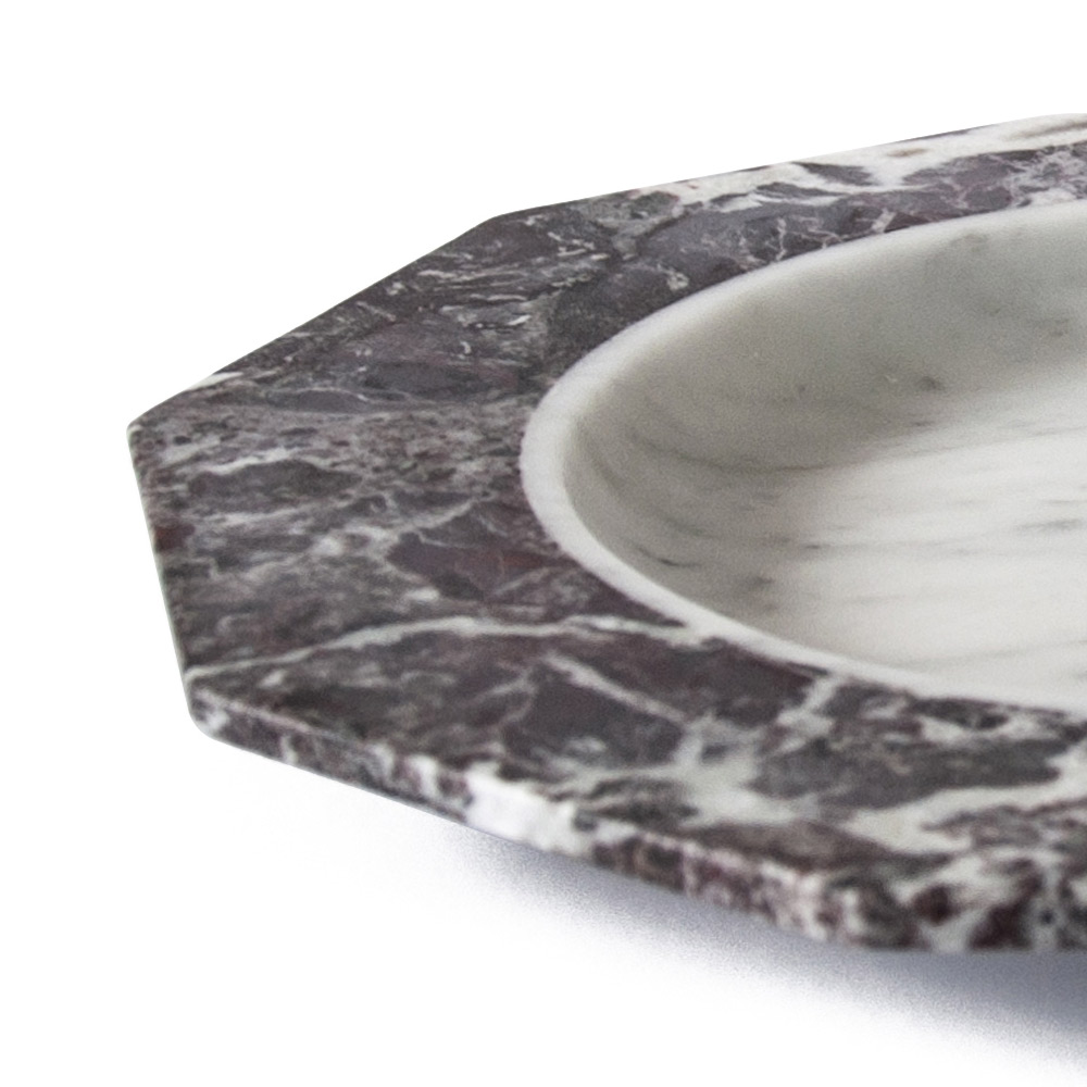 Satängtallrik i vit, svart eller vit och röd Levanto-marmor tillverkad i Italien.
