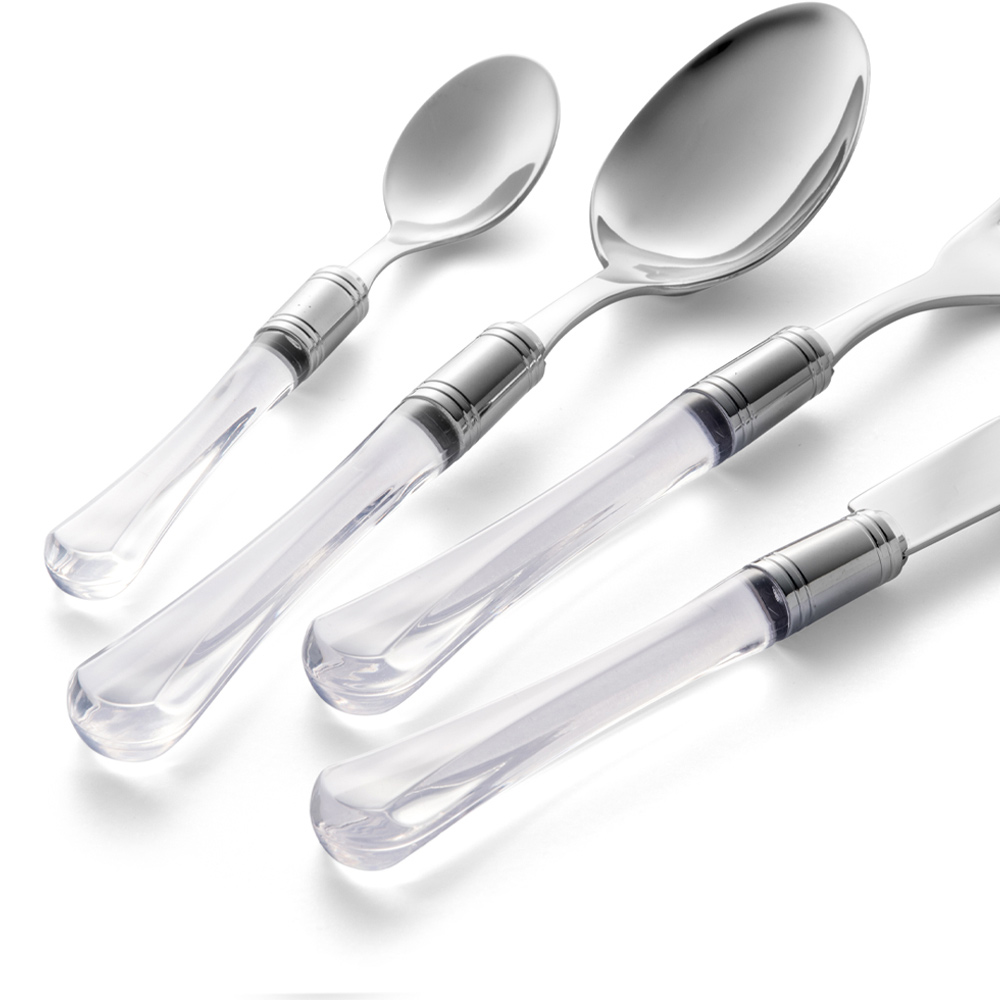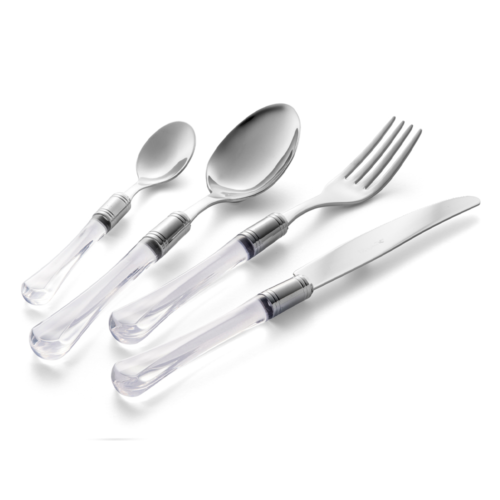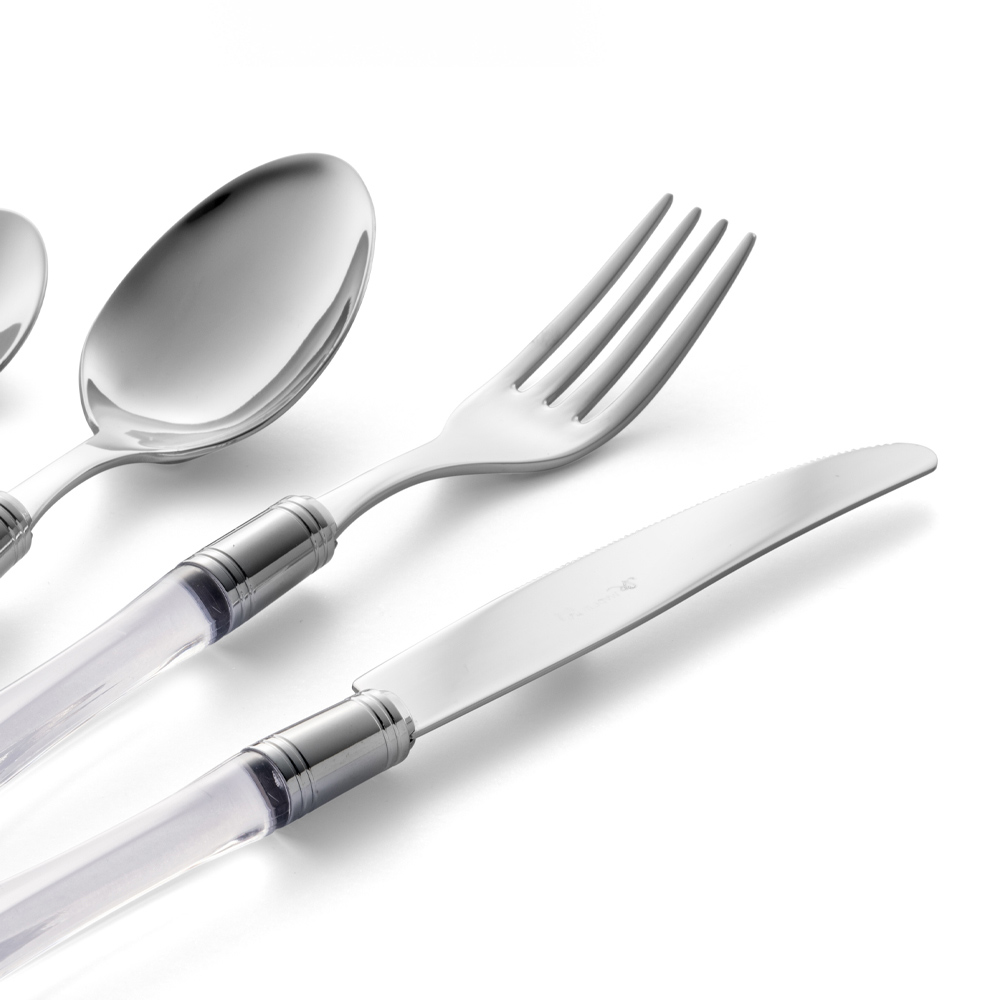 Bestickset i rostfritt stål och 24 delar genomskinligt plasthandtag tillverkat i Italien.