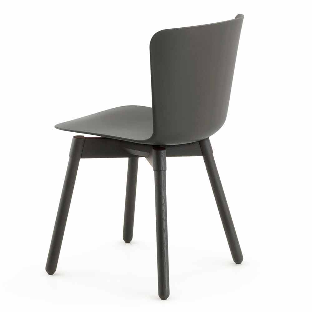 Innovativ stol för matsal eller kök tillverkad i Italien med sits och rygg i polypropen och struktur i svartbejdlad ek .