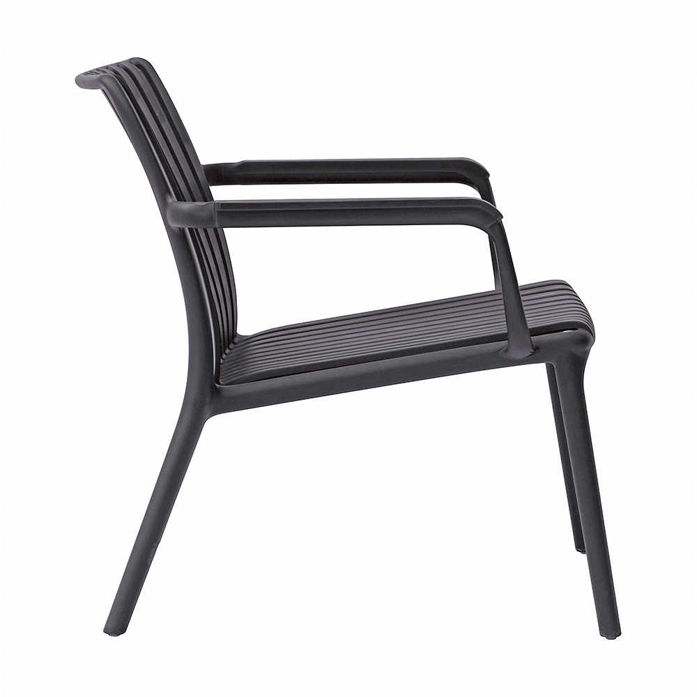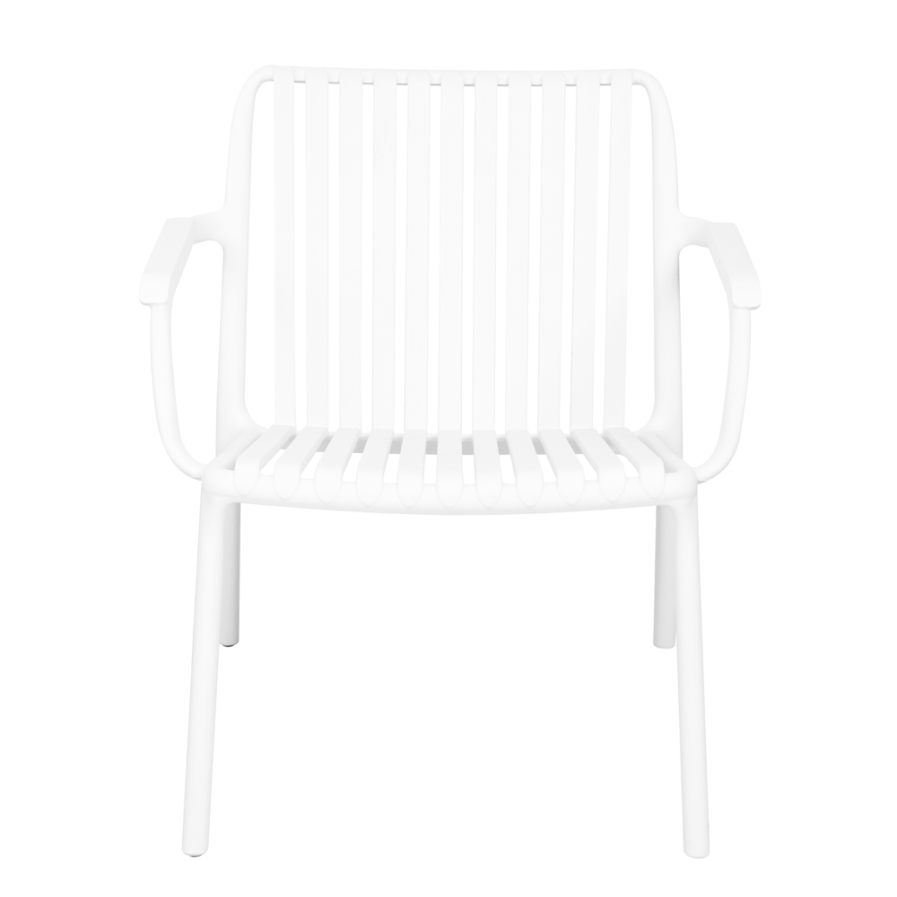 Denna trädgårdsfåtölj kombinerar modern stil, komfort och hållbarhet och erbjuder den perfekta lösningen för att smakfullt möblera alla utomhusutrymmen. Tillverkad av polypropen med tillsatt glasfiber garanterar den en solid, lätt och hållbar struktur, perfekt för dagligt utomhusbruk.