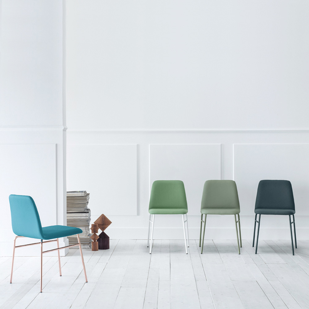 Tillverkad i Italien modern stol perfekt för matsal eller kök med målad metallkonstruktion och stoppad sits täckt med tyg . Enkla linjer sträcker sig genom hela figuren av detta komplement med en modern själ, perfekt för dem som letar efter en minimal produkt utan att vilja ge upp en original och modern design. Tack vare dess väsentlighet förändras dess personlighet beroende på de valda färgkombinationerna och föreslår diskreta och eleganta lösningar tack vare neutrala nyanser men också färgglada och originella idéer med mer extravaganta nyanser som är perfekta för att ge dina möbler en kreativ och originell touch och lyckas anpassa sig till alla inredningssituation.