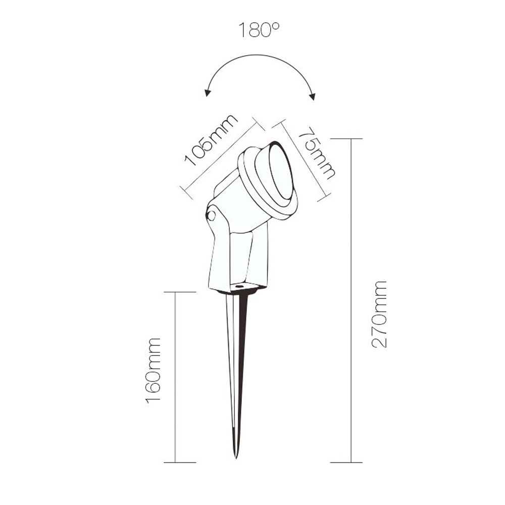 Utomhus spotlight med svart gjuten aluminiumstruktur komplett med 3W LED med 180° justerbar kropp. En LED-spot för utomhusbruk med en spets som ska bäddas in i marken med en modern och mångsidig design som projicerar en annorlunda ljusstråle efter behoven tack vare möjligheten att orientera den efter dina behov. Idealisk för belysning av växter, träd, rabatter inom utomhusutrymmen som trädgårdar både i hemmiljöer och i kontraktsmiljöer.