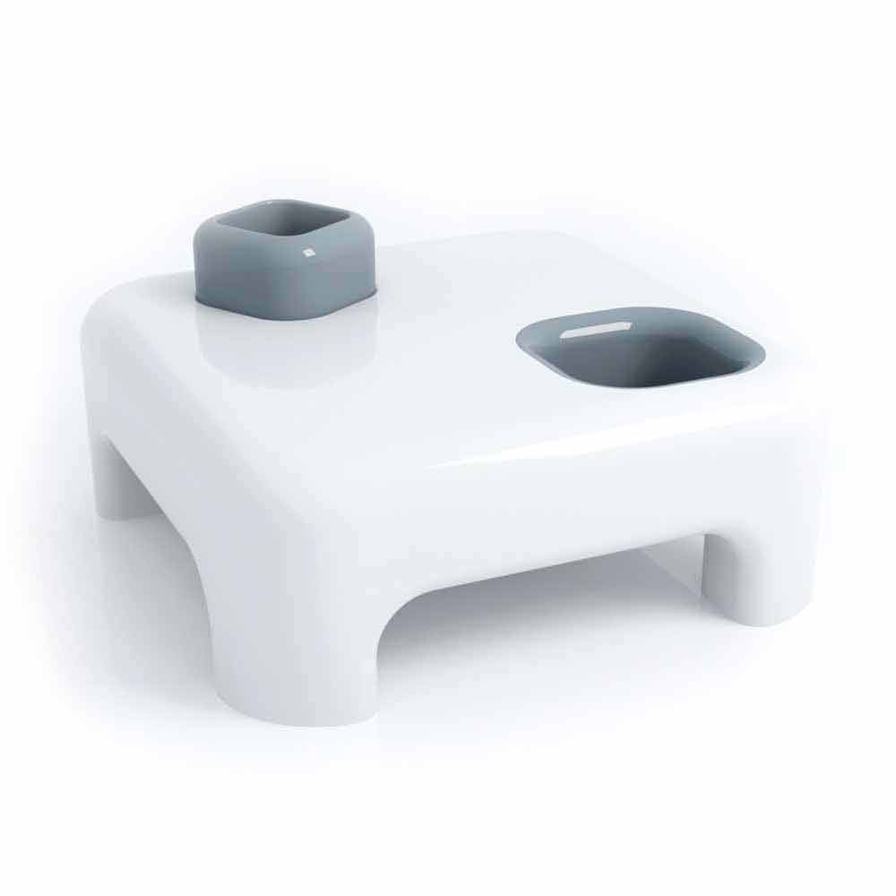 En vändbar "kub" är inrymd i ett ihåligt fack och verkar ha tagits ut ur hålet i andra änden av hyllan. Dessa tre element ger olika ytterligare funktioner: riser, vas eller behållare för "kuben". Ficktommare för det snidade fotavtrycket, medan hålet kan bli en vas eller förvaringsfack (flaskor, tidskrifter, växter ...).