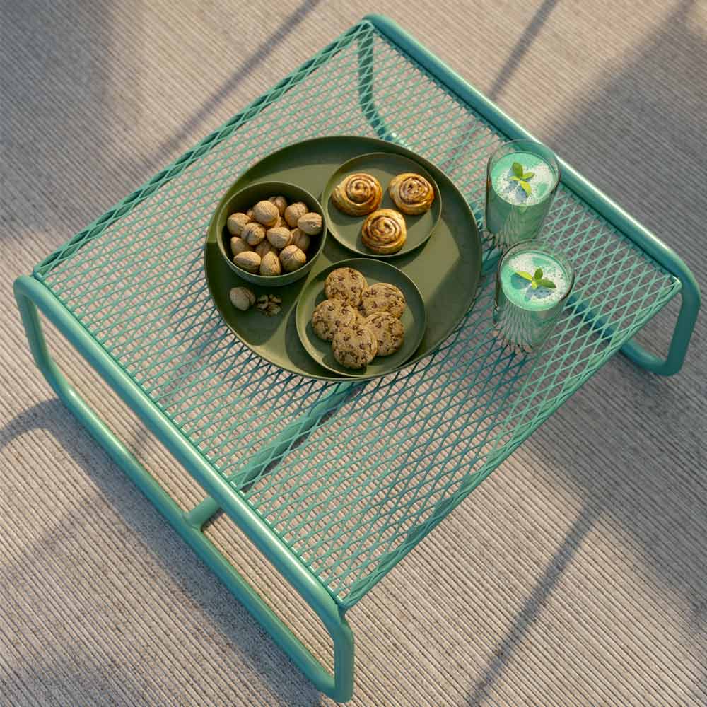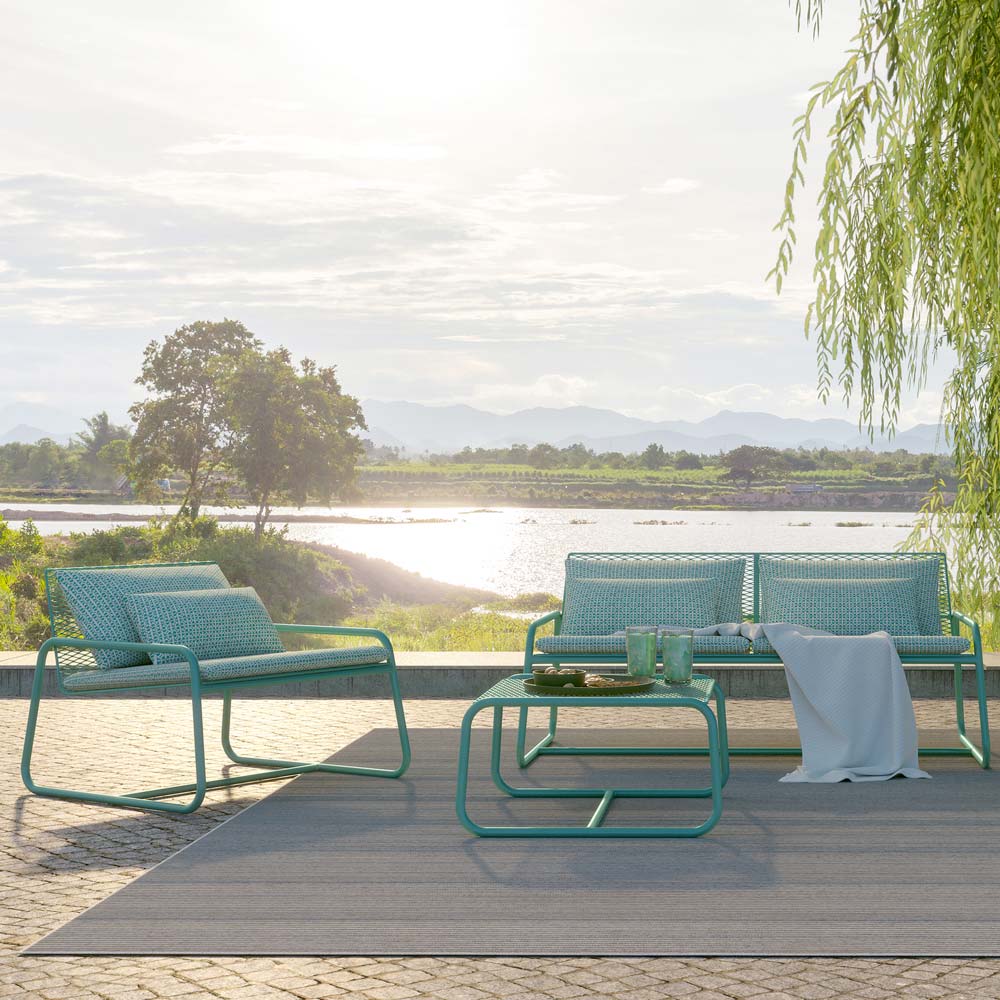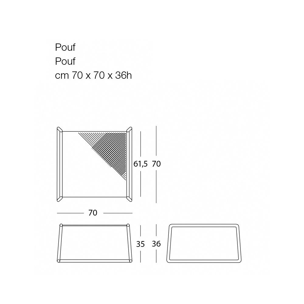 soffbordspuff utomhus har en rigorös design med en avgjort modern smak, men den solida och imponerande figuren mjukas upp av de rundade benen. Designen gör att du kan fungera som en puff, en puff för att kombinera med en fåtölj för större komfort eller som ett soffbord.