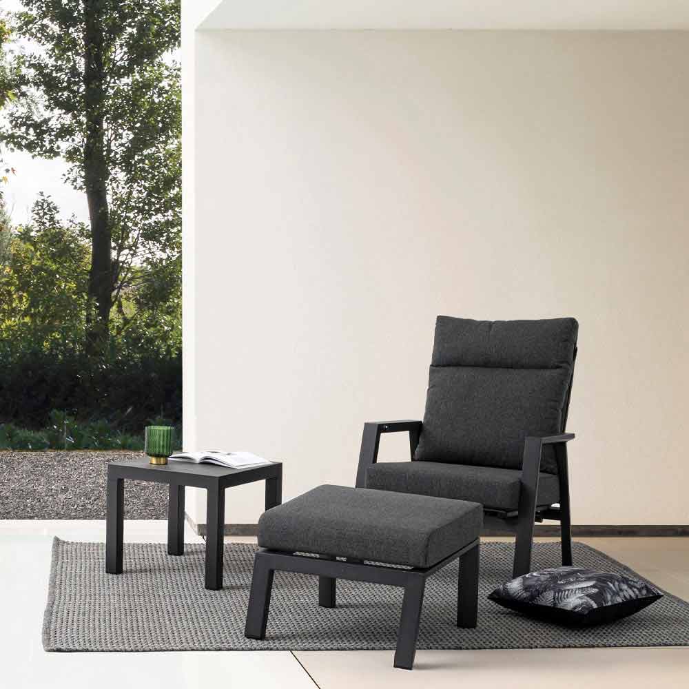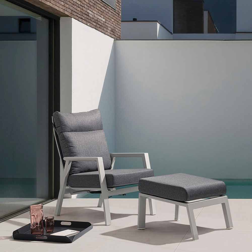 Fotstödspuff i målad aluminium med avtagbar kudde.