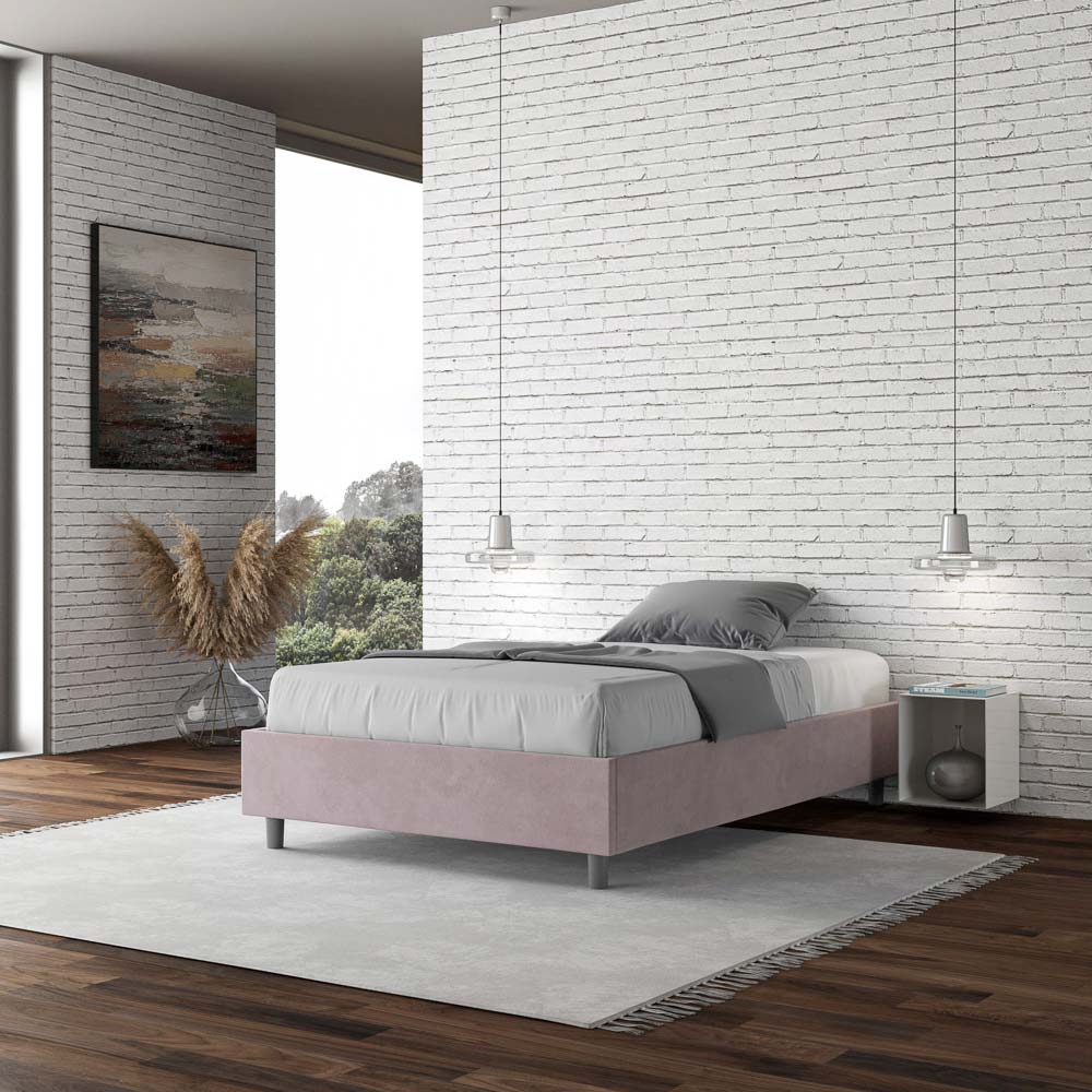 Fransk säng 140x200 cm vadderad och klädd i mikrofiber, Tillverkad i Italien