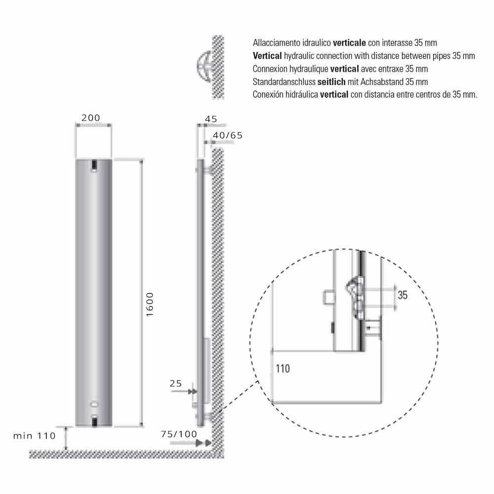 OBS: Ventilerna och hållaren är exkluderade, för att ta emot dem skriv till oss i formuläret "Begär information". Finns på begäran också klädhängaren i satin rostfritt stål, ingår inte i priset.