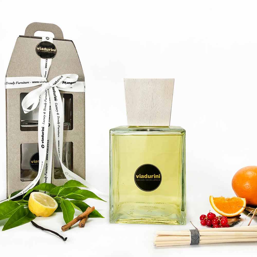 Fruktig hemdoft av mandarin och kanel med dekorpinnar - Made in Italy essence.