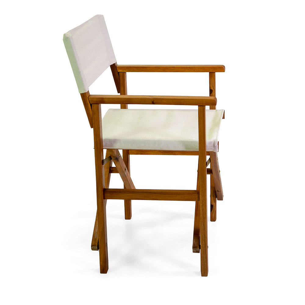 Upptäck director's chair i trä, som kombinerar funktionalitet och stilig praktiskhet för tidlös komfort. Denna klassiska möbel, tillverkad med en stark träram, har släta armstöd och en väv sits och ryggstöd, vilket ger maximal komfort och stöd.