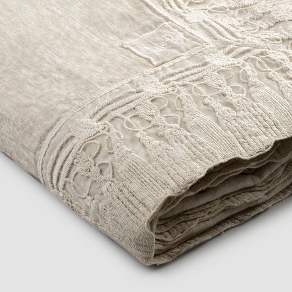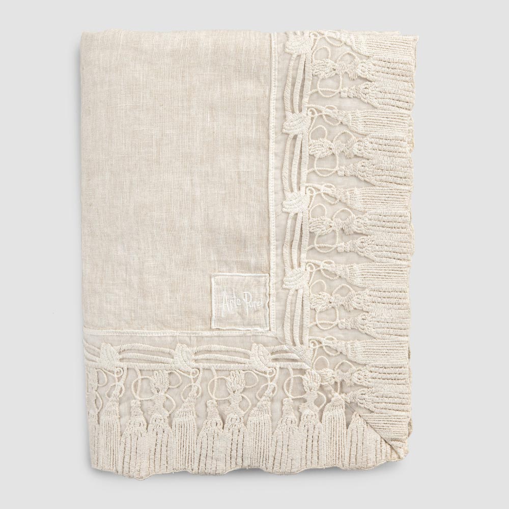 Rektangulär linneduk med spets tofsar, handgjord lyx tillverkad i Italien.