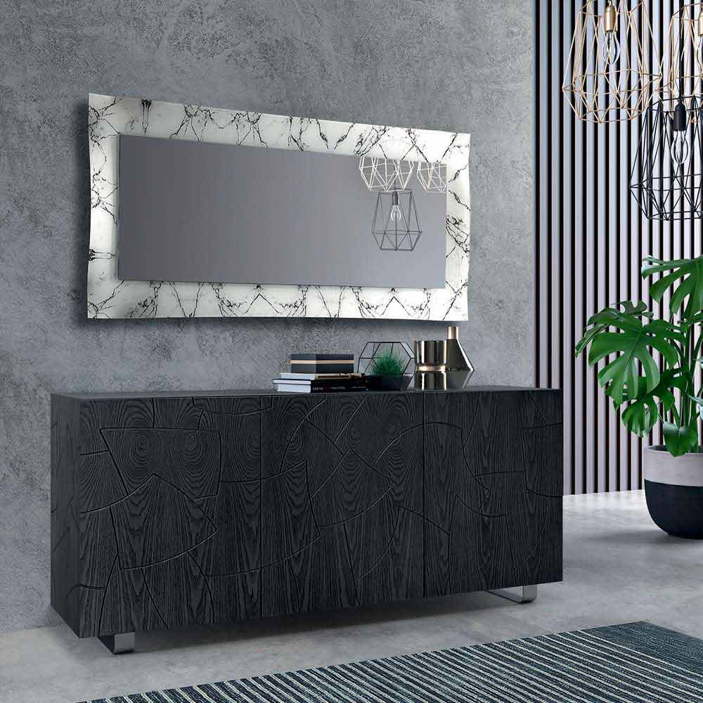 Rektangulär spegel med ram i spegelblank finish eller marmoreffekt Tillverkad i Italien.