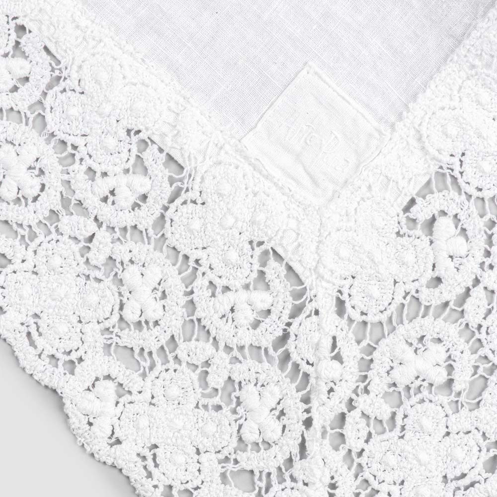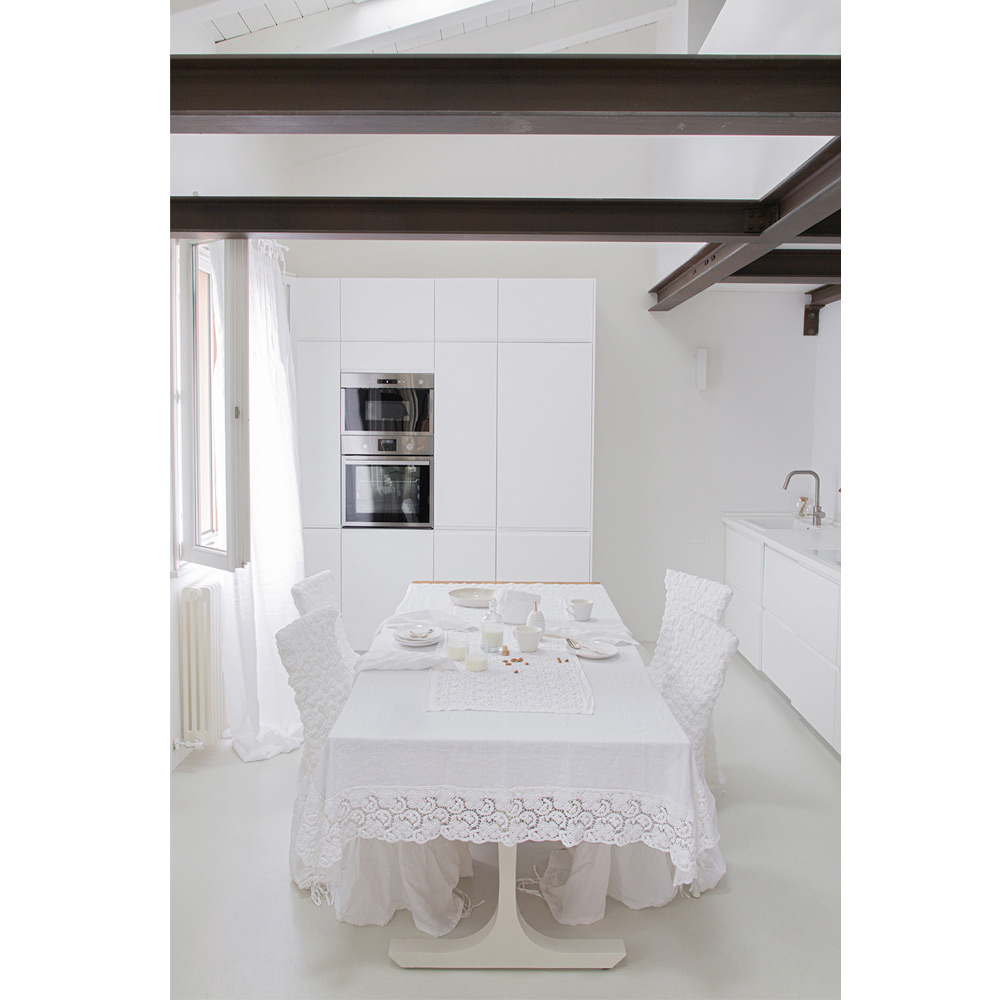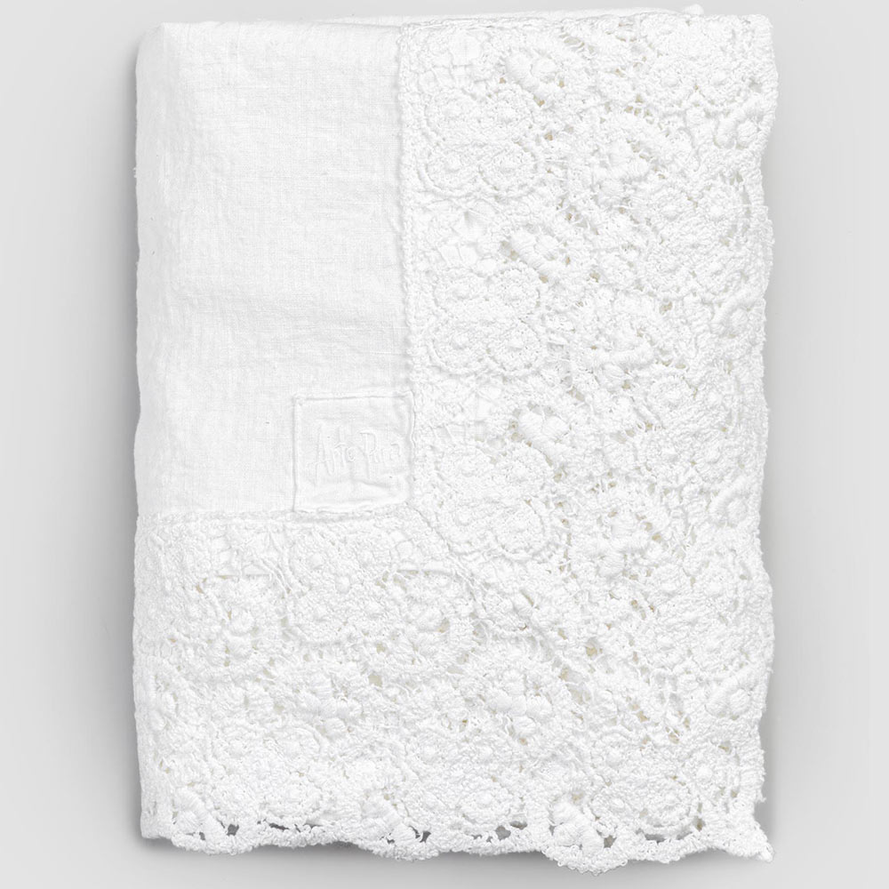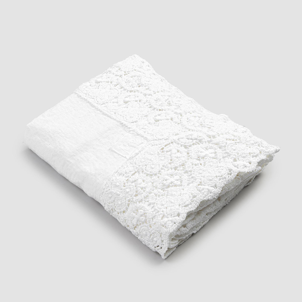 Ren vit linneduk med spetsar, lyxig design av hög kvalitet tillverkad i Italien.