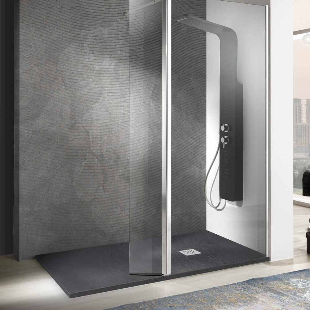 Modernt duschkar 140x80 i harts med effekt i sten och stål.