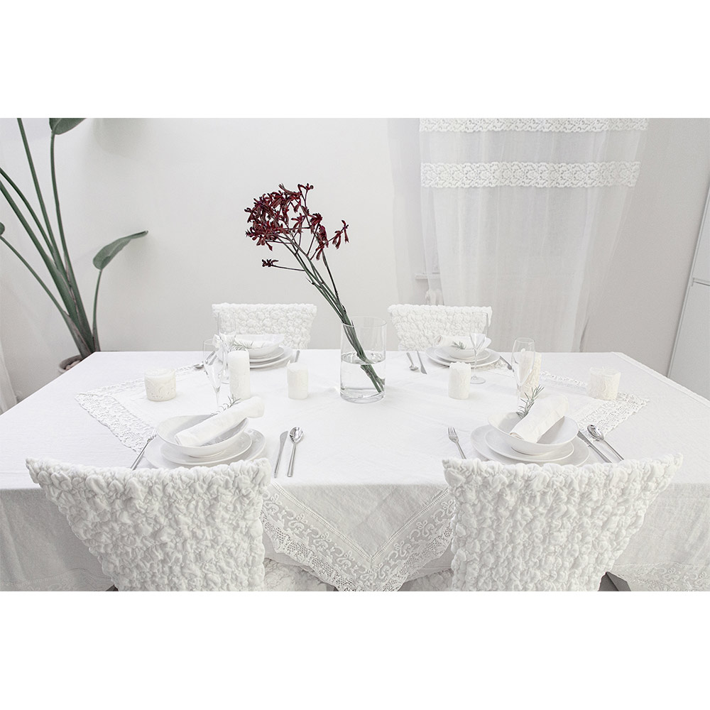 Stor rektangulär duk i rent linne med kantar med eller utan spetsar, lyxig handgjord design tillverkad i Italien.