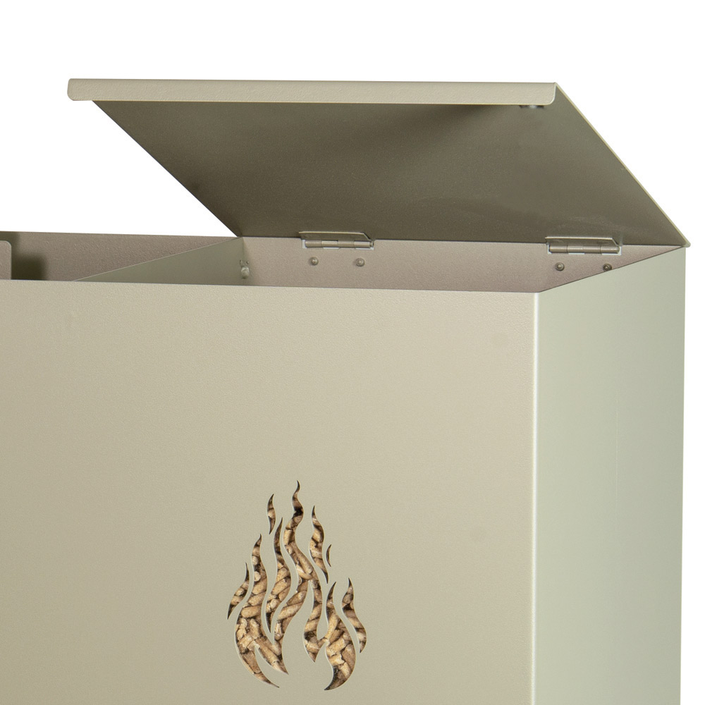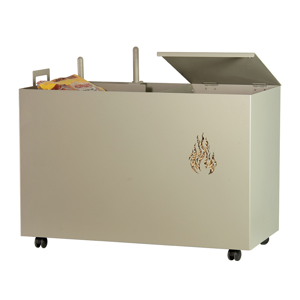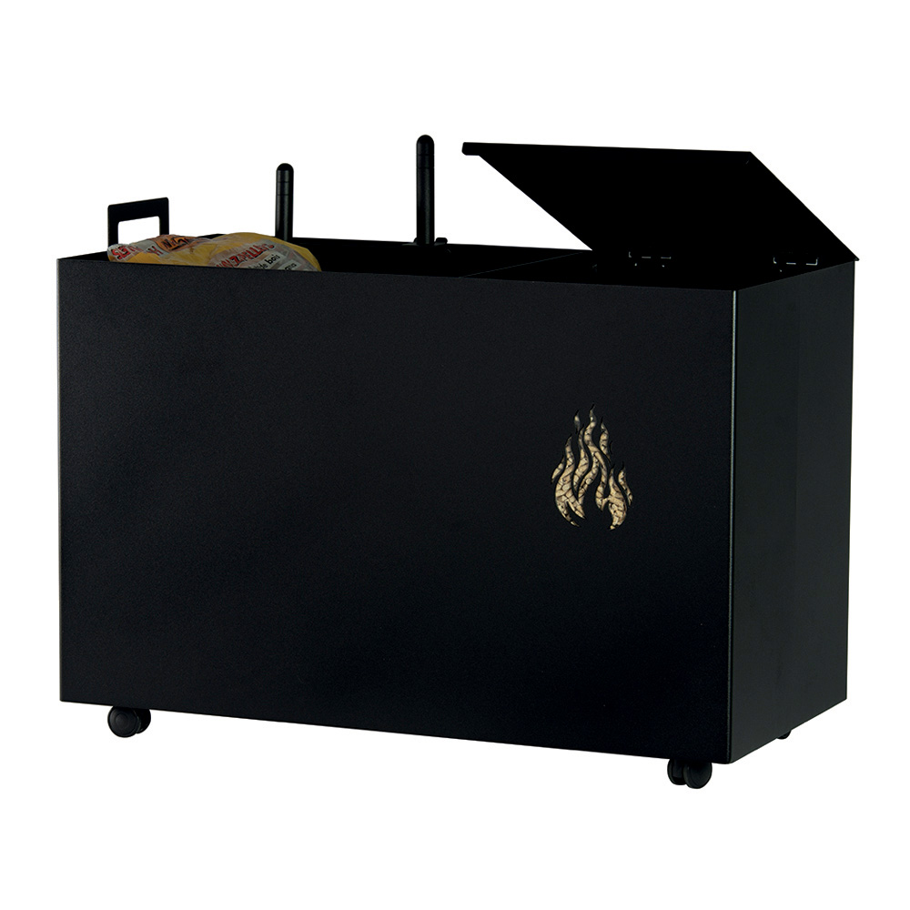 Denna eldstadspelletsvagn är en idealisk lösning för dig som letar efter ett elegant och praktiskt sätt att förvara pellets. Den robusta strukturen och moderna designen passar perfekt in i alla inredningsstilar. Flamsymbolen på framsidan lägger till en dekorativ detalj som understryker vagnens funktion, vilket gör den omedelbart igenkännbar.