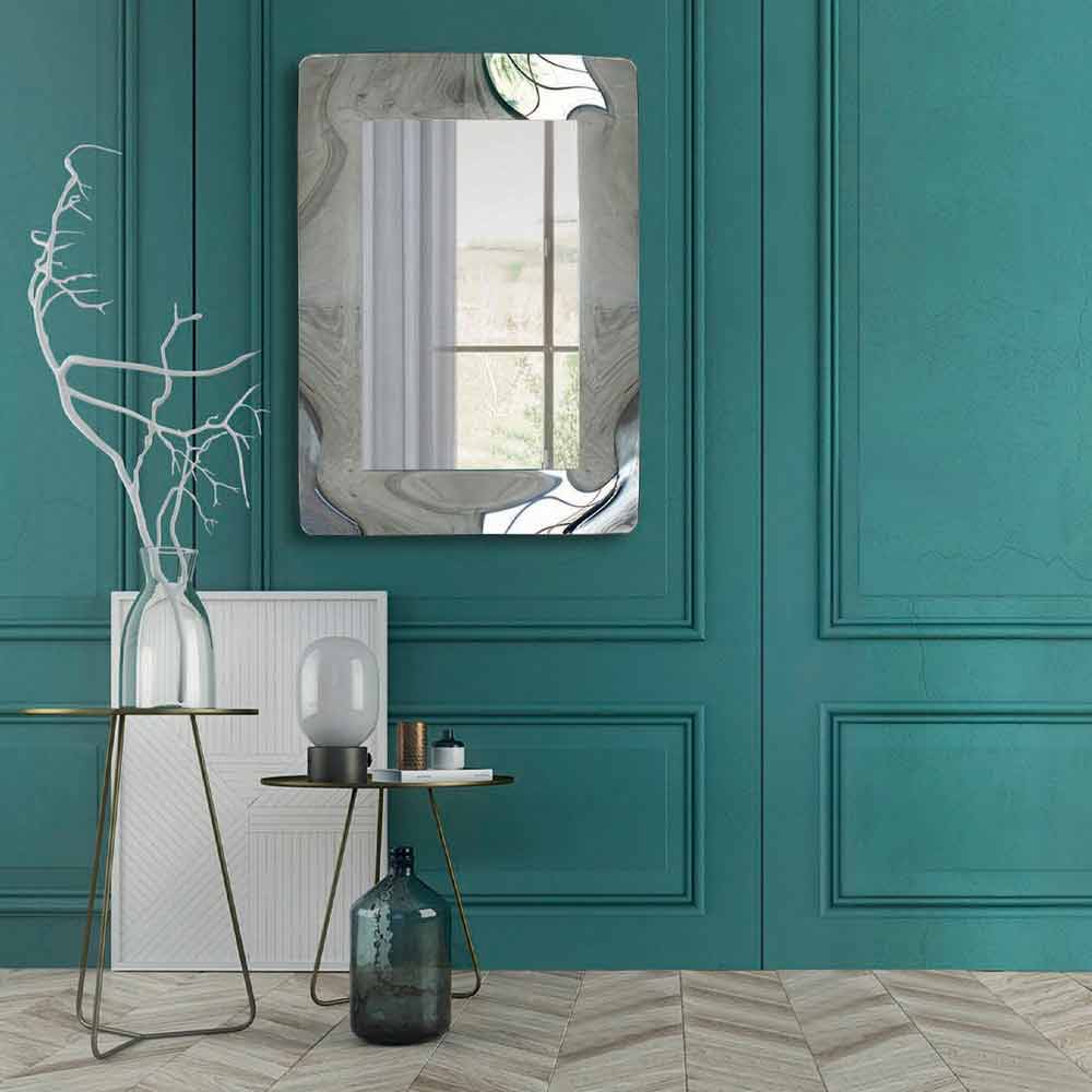 Rektangulär väggspegel Tillverkad i Italien med ram helt gjord av 6 mm böjt glas i spegelglasfinish .