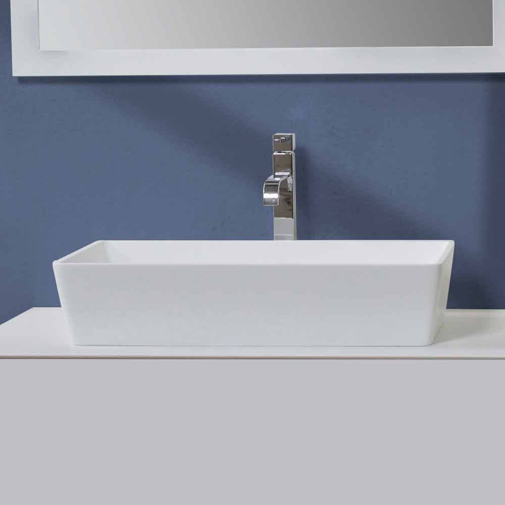 Rektangulärt bänkhandfat i optiskt vitt harts.