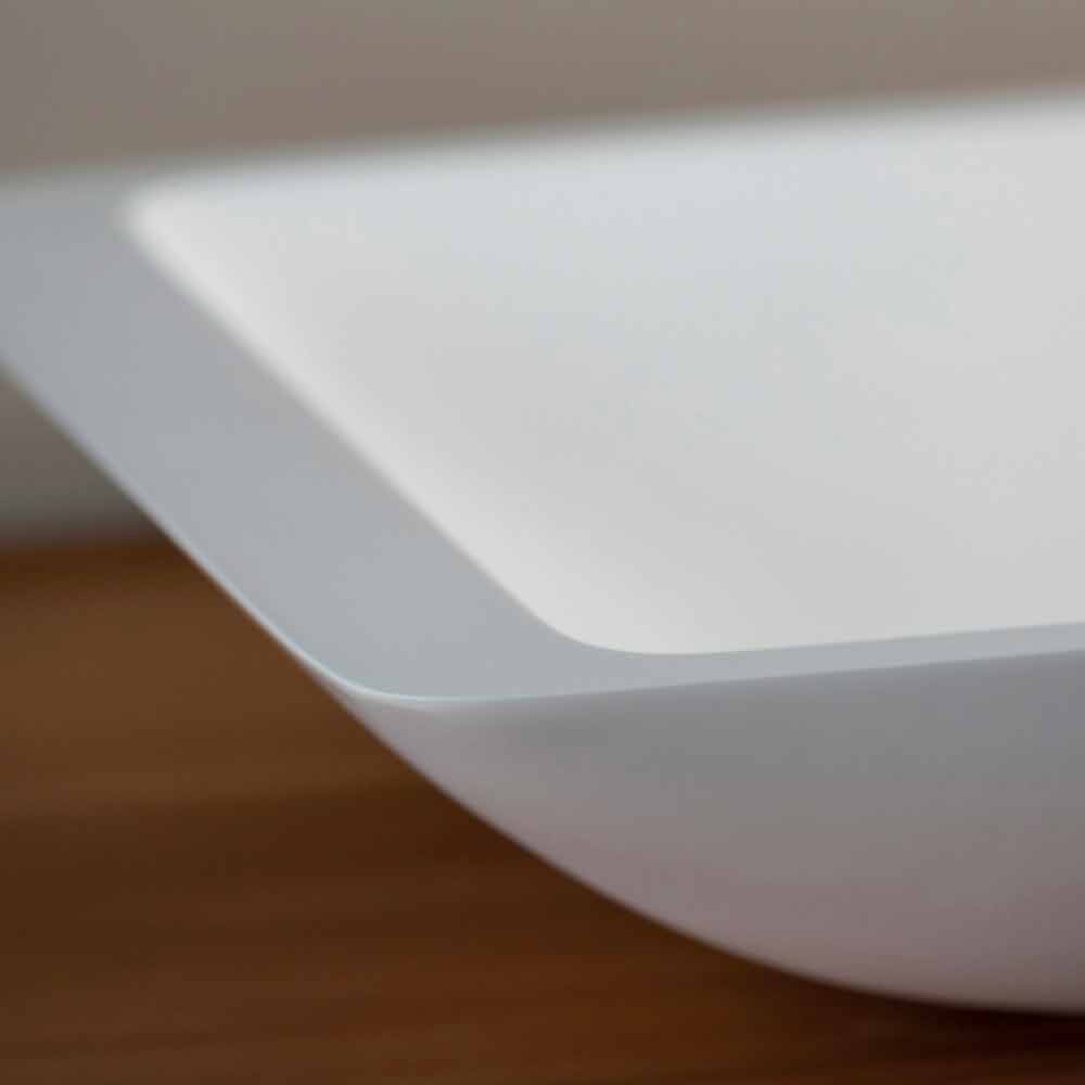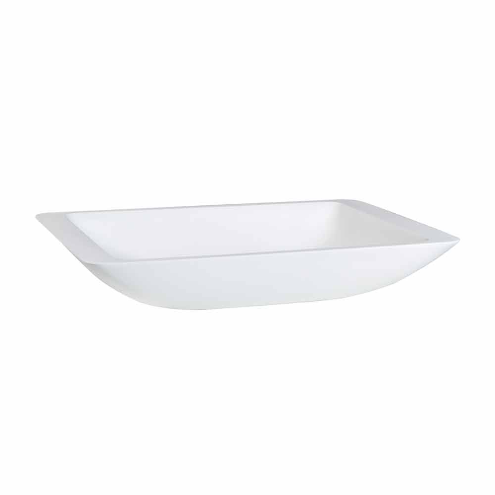 Rektangulärt vitt bänkhandfat, modern design.