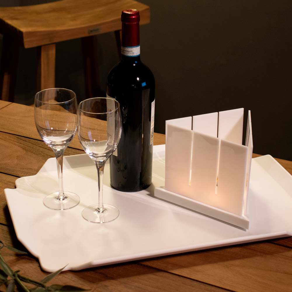 elegant och mångsidig design eftersom den också kan användas upp och ner som skärbräda.