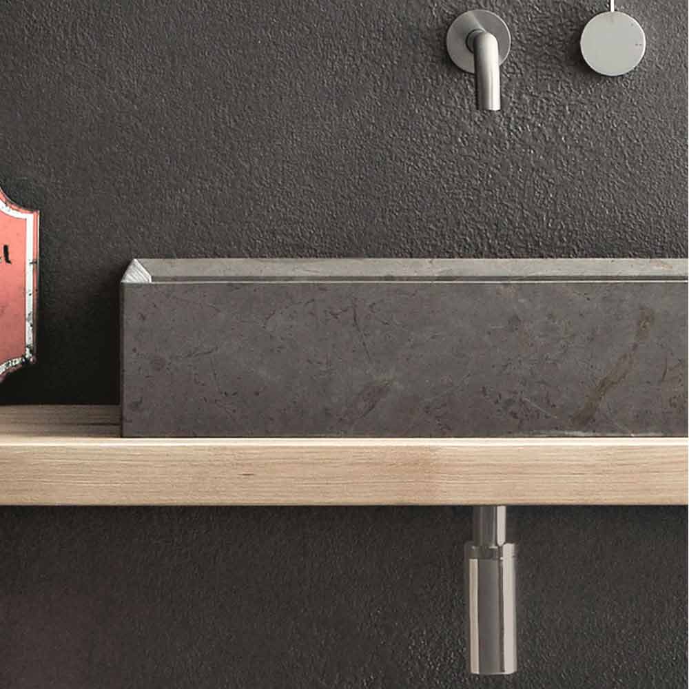 Rektangulärt tvättställ, modern design i natursten, utan avloppshål.