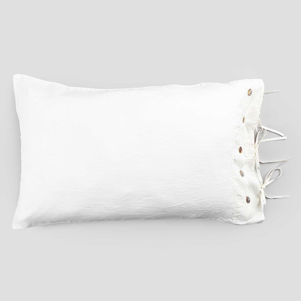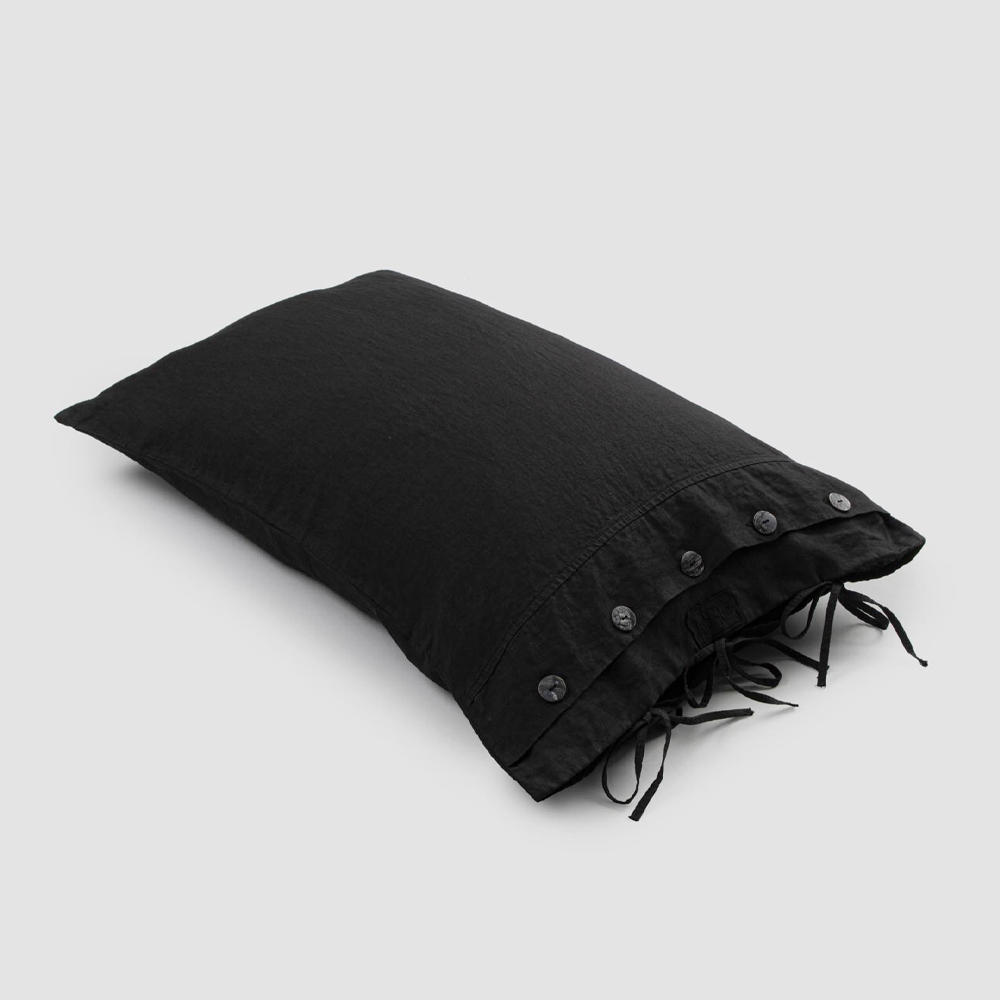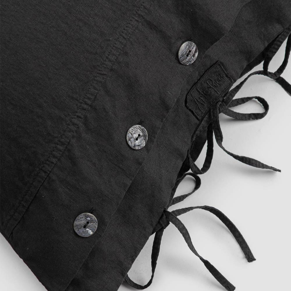 Lyxigt örngott i vitt eller svart linne med knappar och snören, tillverkad i italiensk kvalitet.