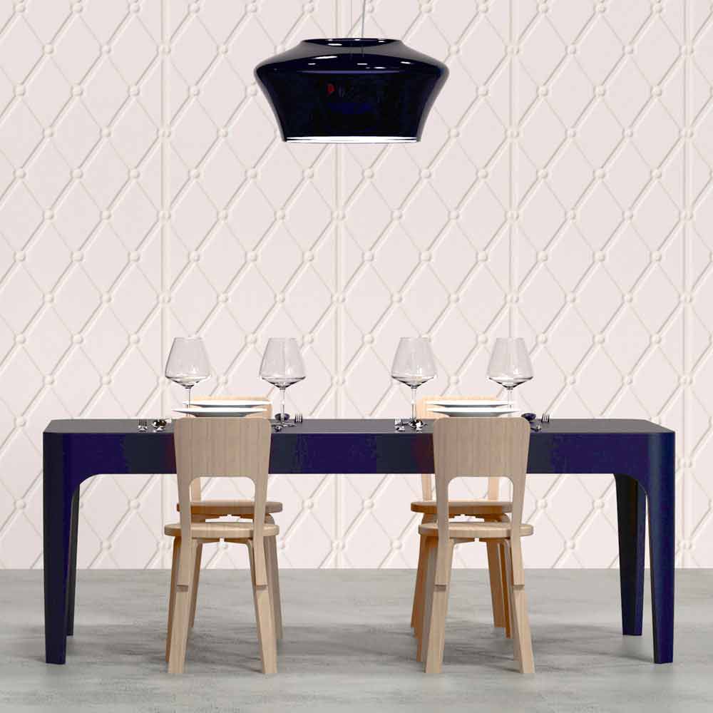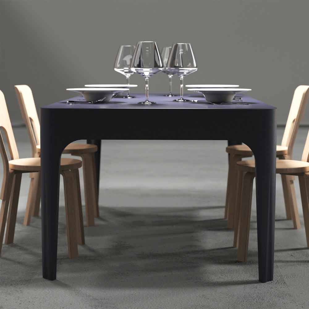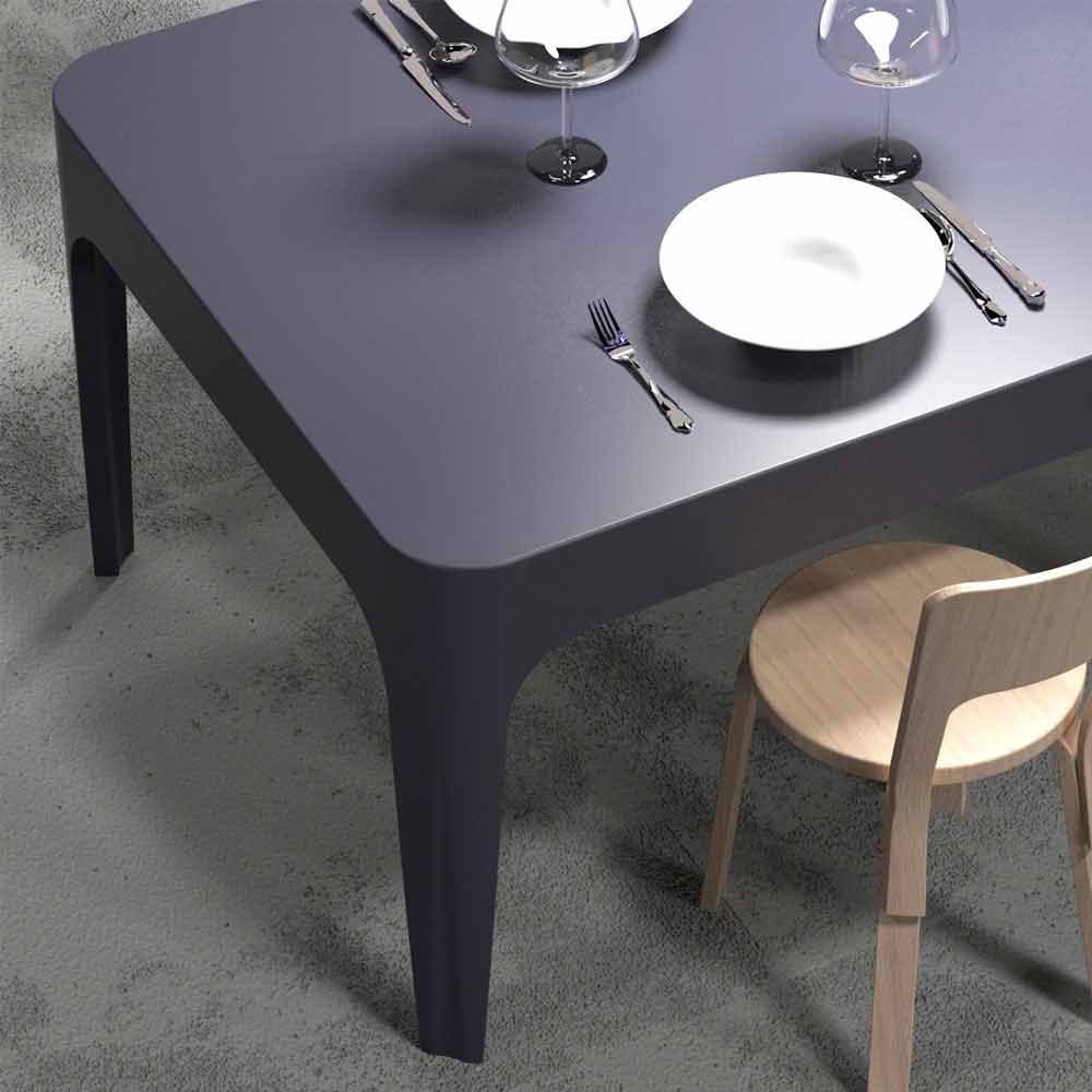 Bord tillverkat av ett enda element, det har rena och linjära former som ger det ett modernt och aktuellt utseende. Kännetecknas av den viktiga kanten och snittet skapar form på benen. Den passar bra som matbord eller skrivbord i en modern miljö eller med klassiska referenser som ramar och stuckatur. Finns i två färgvarianter: midnattsblå (RAL5011) eller vit (RAL9003), välj den som passar dig bäst!