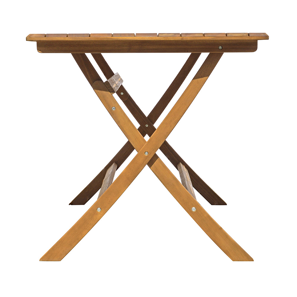 Tillverkat av akaciaträ , känt för sin styrka och hållbarhet, är bordet inte bara estetiskt tilltalande utan också utformat för att motstå atmosfäriska ämnen, vilket säkerställer en lång livslängd för produkten. De rena linjerna och den kompakta designen passar perfekt in i alla utomhusmiljöer och skapar ett välkomnande utrymme för avkoppling och umgänge.